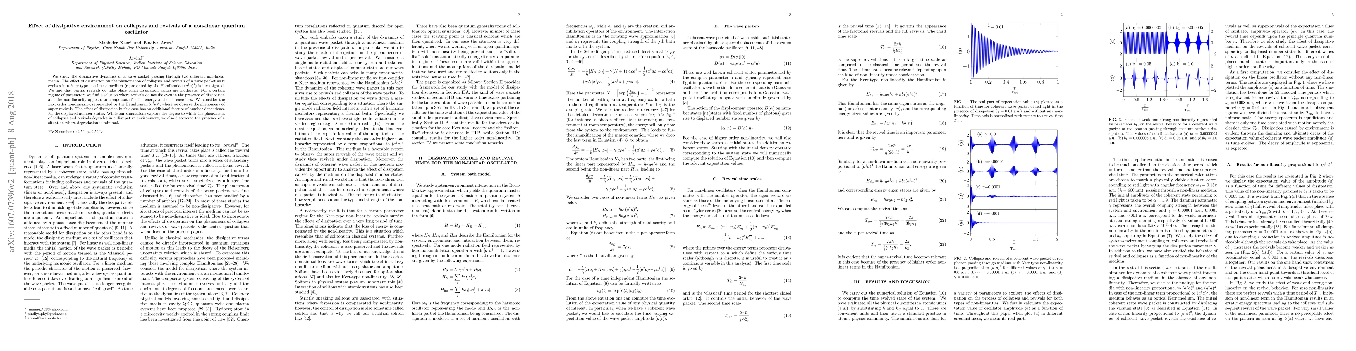 This research investigates the impact of dissipative environments on the collapses and revivals of wave packets in nonlinear quantum oscillators, particularly in Kerr-type and cubic nonlinear media. It reveals that moderate dissipation can lead to partial revivals, and under certain conditions, non-linearity compensates for energy and coherence loss, even in the presence of dissipation.