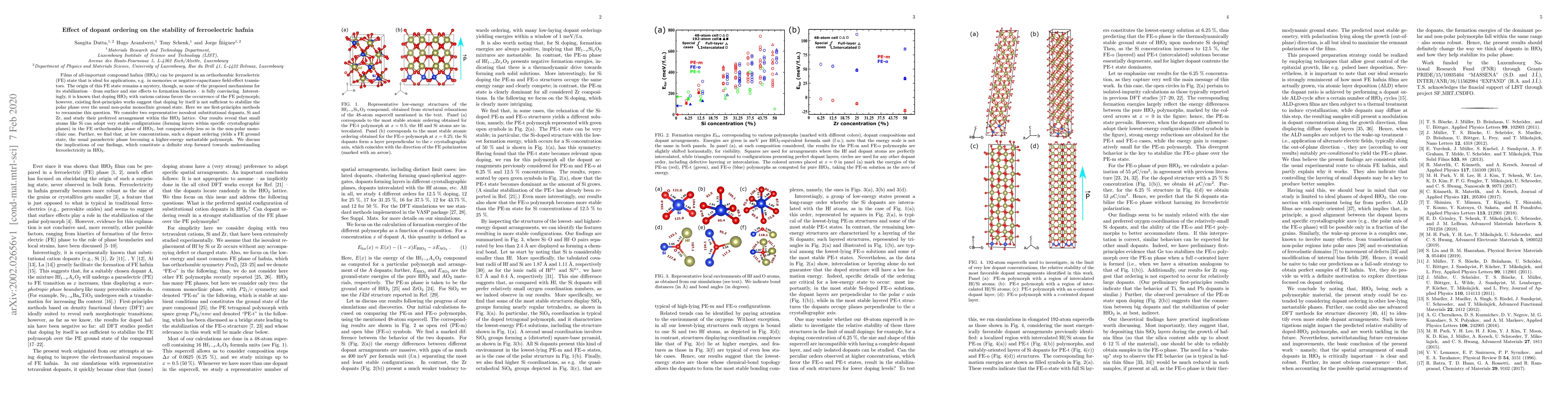 Researchers used first-principles methods to study the effect of dopant ordering on the stability of ferroelectric hafnia, finding that small atoms like Si can stabilize the orthorhombic phase at low concentrations.