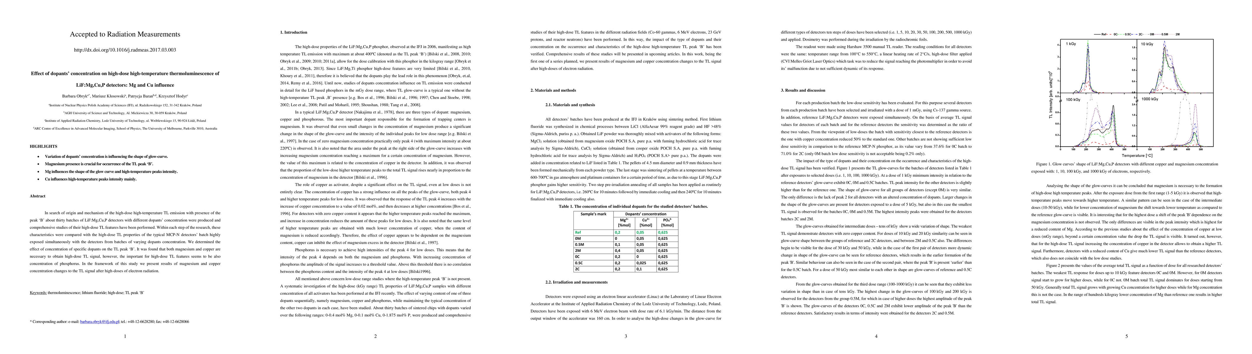 Researchers studied the effect of dopant concentrations on LiF:Mg,Cu,P detectors' high-temperature thermoluminescence under high-dose electron radiation, finding magnesium and copper crucial for a signal, with phosphorus concentration also important for optimal features.