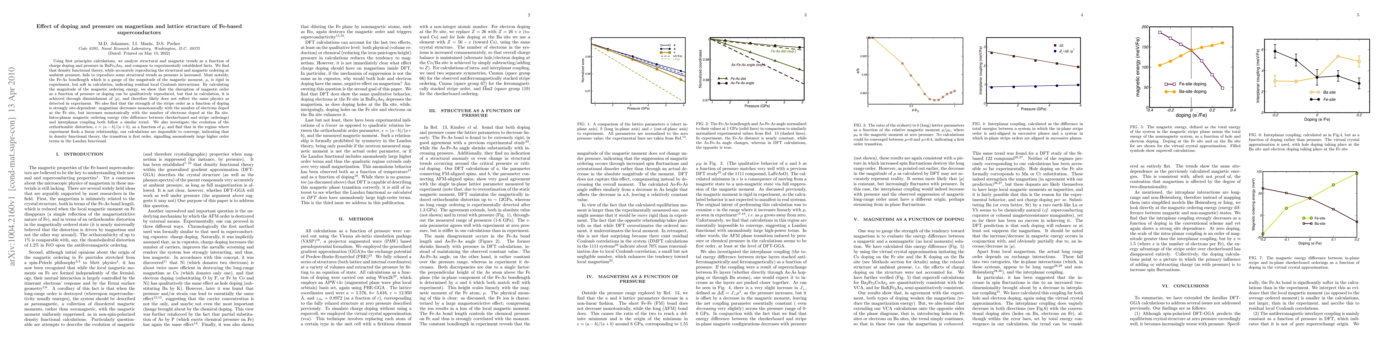 Using first principles calculations, we analyze structural and magnetic trends as a function of charge doping and pressure in BaFe$_2$As$_2$, and compare to experimentally established facts. We find that density functional theory, while accurately reproducing the structural and magnetic ordering at ambient pressure, fails to reproduce some structural trends as pressure is increased. Most notably, the Fe-As bondlength which is a gauge of the magnitude of the magnetic moment, $\mu$, is rigid in experiment, but soft in calculation, indicating residual local Coulomb interactions. By calculating the magnitude of the magnetic ordering energy, we show that the disruption of magnetic order as a function of pressure or doping can be qualitatively reproduced, but that in calculation, it is achieved through diminishment of $|\mu|$, and therefore likely does not reflect the same physics as detected in experiment. We also find that the strength of the stripe order as a function of doping is strongly site-dependent: magnetism decreases monotonically with the number of electrons doped at the Fe site, but increases monotonically with the number of electrons doped at the Ba site. Intra-planar magnetic ordering energy (the difference between checkerboard and stripe orderings) and interplanar coupling both follow a similar trend. We also investigate the evolution of the orthorhombic distortion, $e=(a-b)/(a+b),$ as a function of $\mu$, and find that in the regime where experiment finds a linear relationship, our calculations are impossible to converge, indicating that in density functional theory, the transition is first order, signalling anomalously large higher order terms in the Landau functional.