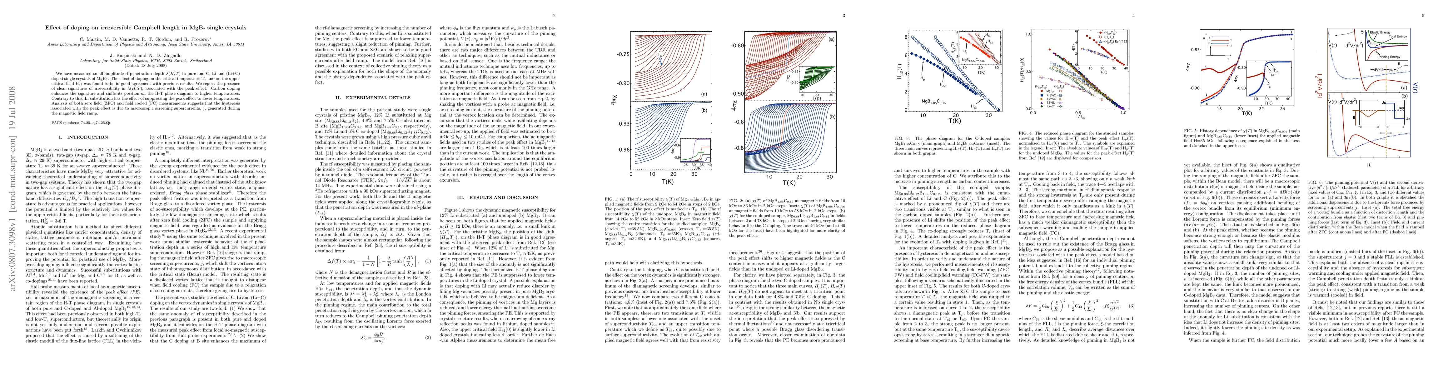We have measured small-amplitude rf penetration depth $\lambda(H,T)$ in pure and C, Li and (Li+C) doped single crystals of MgB$_2$. The effect of doping on the critical temperature T$_c$ and on the upper critical field H$_{c2}$ was found to be in good agreement with previous results. We report the presence of clear signatures of irreversibility in $\lambda(H,T)$, associated with the peak effect. Carbon doping enhances the signature and shifts its position on the H-T phase diagram to higher temperatures. Contrary to this, Li substitution has the effect of suppressing the peak effect to lower temperatures. Analysis of both zero field (ZFC) and field cooled (FC) measurements suggests that the hysteresis associated with the peak effect is due to macroscopic screening supercurrents, $j$, generated during the magnetic field ramp.