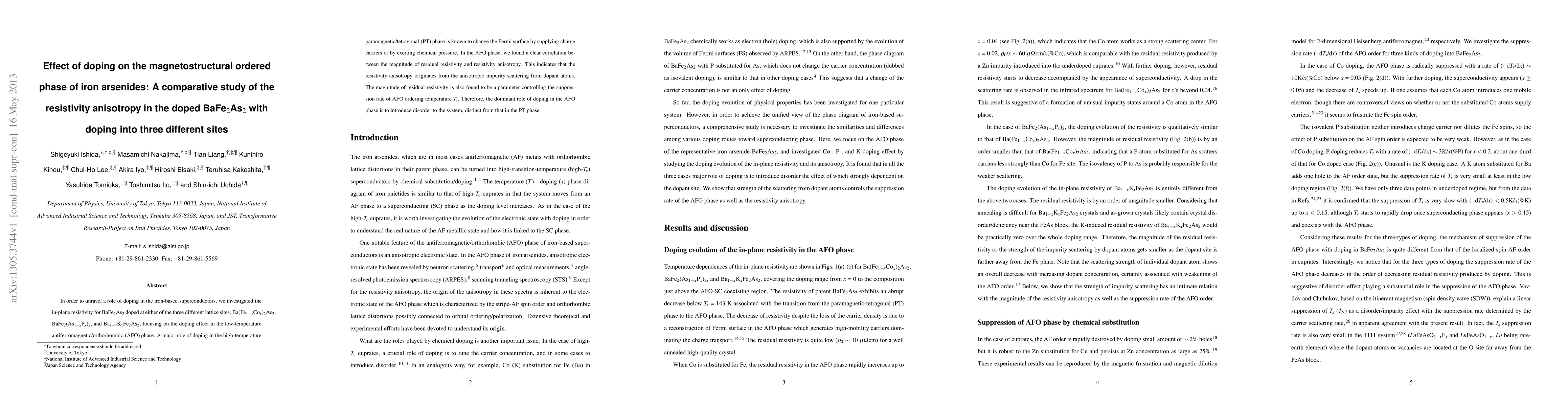 This study investigates the impact of doping on the magnetostructural ordered phase of iron arsenides, specifically focusing on resistivity anisotropy in BaFe$_2$As$_2$ doped at three different sites. The findings reveal that doping primarily introduces disorder in the low-temperature antiferromagnetic/orthorhombic phase, influencing the suppression rate of the ordering temperature.