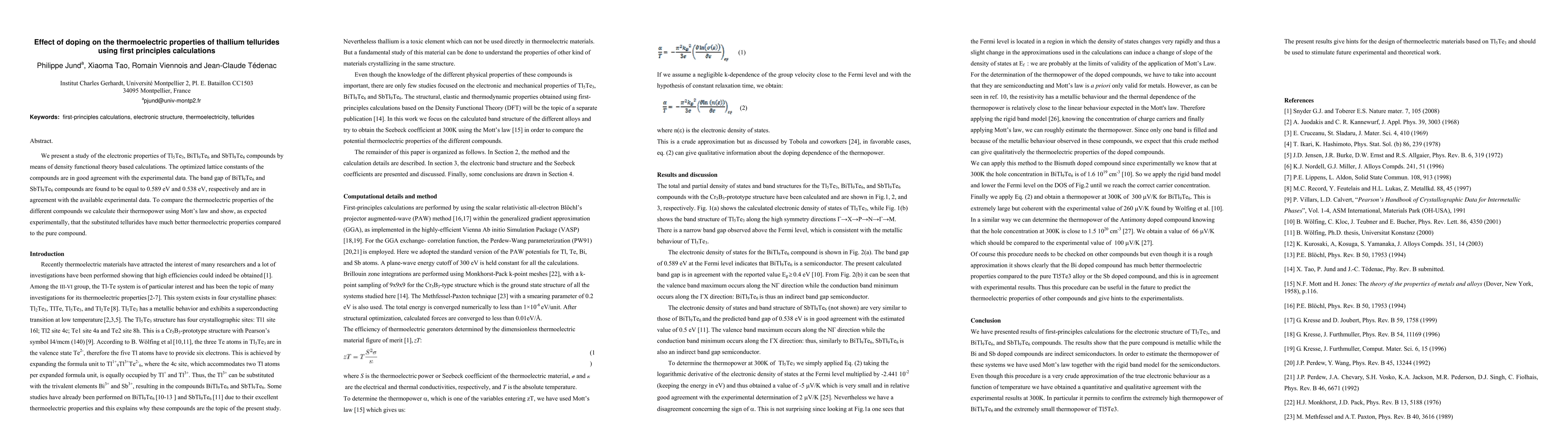 Researchers used first principles calculations to study the effect of doping on thermoelectric properties of thallium tellurides, finding that substituted compounds have improved thermopower compared to pure compounds.