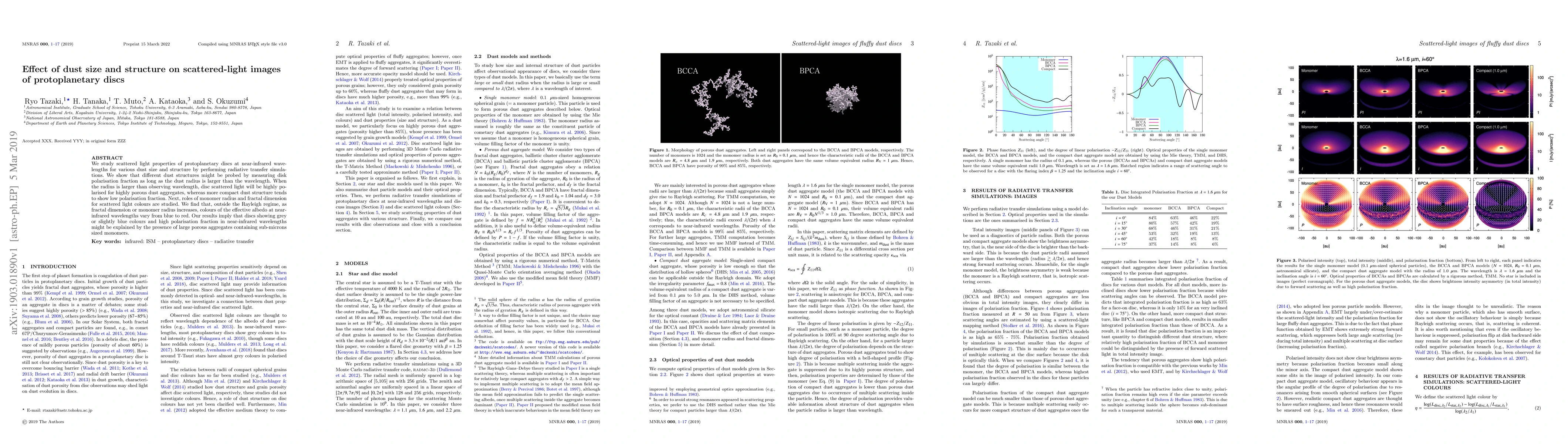 This paper investigates how dust size and structure in protoplanetary discs affect scattered light at near-infrared wavelengths through radiative transfer simulations. It finds that large, porous dust aggregates produce highly polarised light, while compact dust structures show low polarisation, indicating that disc colours and polarisation can reveal dust properties.