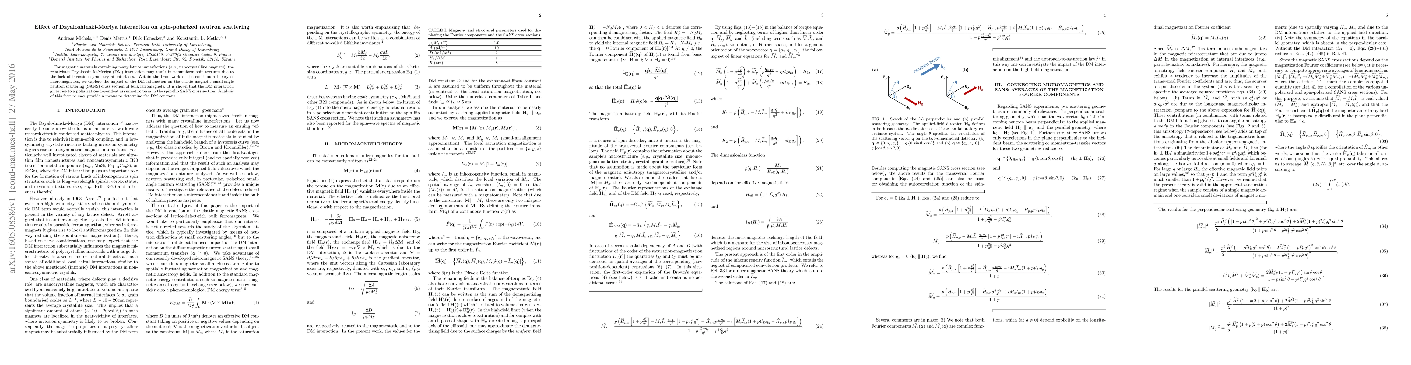 This paper investigates the impact of the Dzyaloshinski-Moriya interaction on the elastic magnetic small-angle neutron scattering (SANS) cross section in magnetic materials with lattice imperfections. It reveals a polarization-dependent asymmetric term in the spin-flip SANS cross section, which can be used to determine the DM constant.