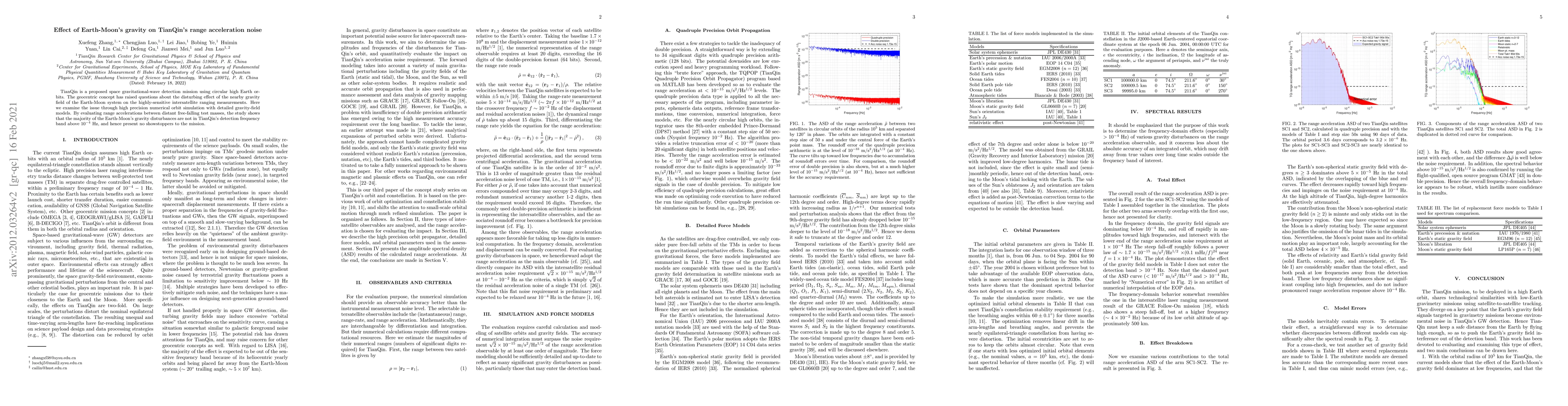This study investigates the impact of Earth-Moon gravitational fields on TianQin's intersatellite ranging measurements, finding that most disturbances lie outside the mission's detection frequency band above $10^{-4}$ Hz, posing no significant threat to the mission's success.