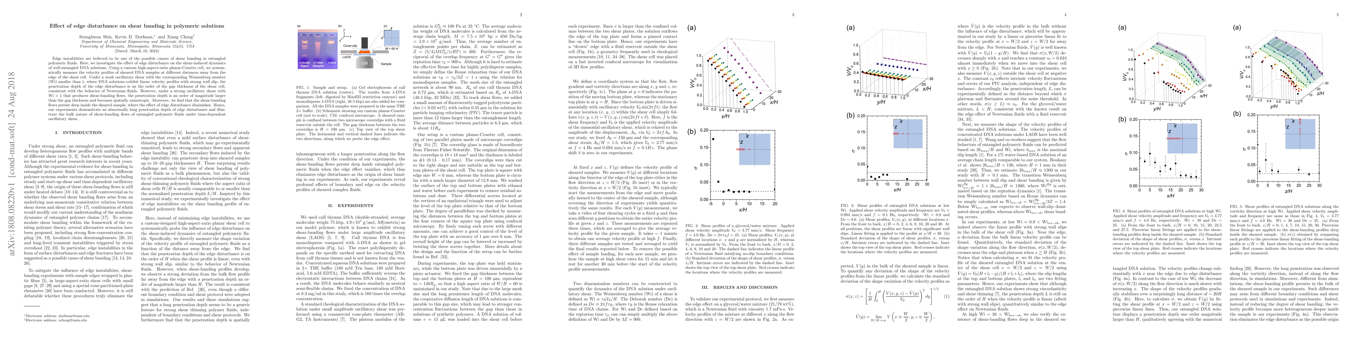 The study investigates the effect of edge disturbance on shear-induced dynamics in well-entangled DNA solutions using a custom high-aspect-ratio planar-Couette cell. Velocity profiles are measured at different distances from the edge under weak and strong oscillatory shear conditions.