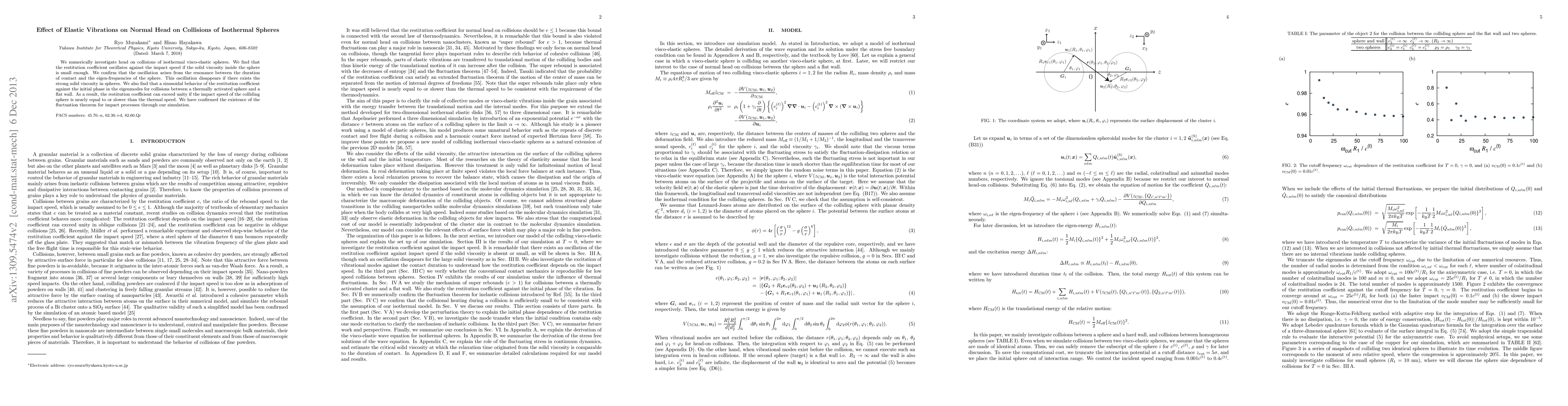 We numerically investigate head on collisions of isothermal visco-elastic spheres. We find that the restitution coefficient oscillates against the impact speed if the solid viscosity inside the sphere is small enough. We confirm that the oscillation arises from the resonance between the duration of contact and the eigen-frequencies of the sphere. This oscillation disappears if there exists the strong solid viscosity in spheres. We also find that a sinusoidal behavior of the restitution coefficient against the initial phase in the eigenmodes for collisions between a thermally activated sphere and a flat wall. As a result, the restitution coefficient can exceed unity if the impact speed of the colliding sphere is nearly equal to or slower than the thermal speed. We have confirmed the existence of the fluctuation theorem for impact processes through our simulation.