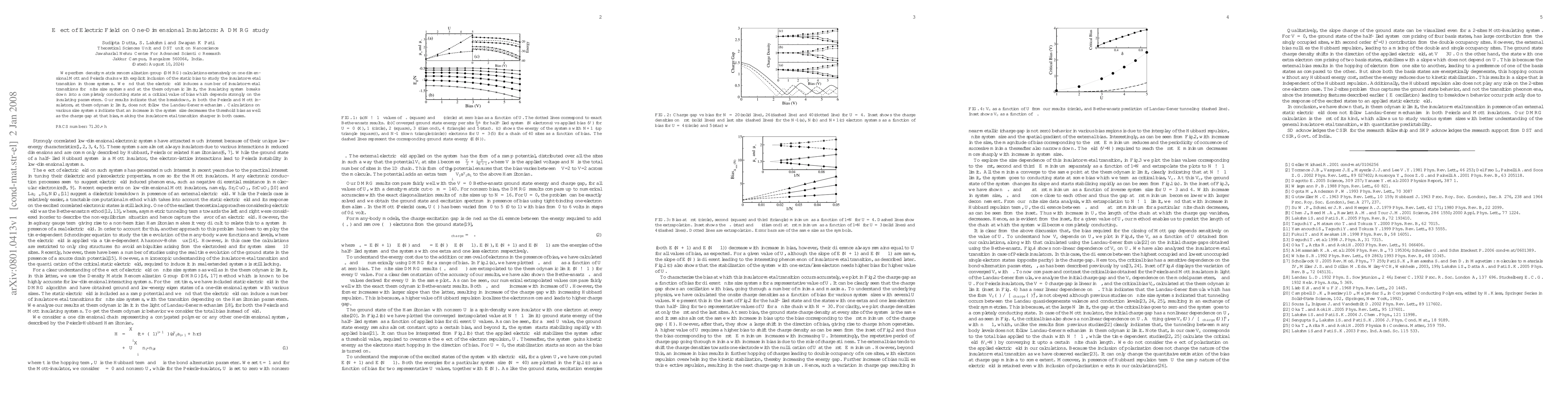 We perform density matrix renormalization group (DMRG) calculations extensively on one dimensional Mott and Peierls chains with explicit inclusion of the static bias to study the insulator-metal transition in those systems. We find that the electric field induces a number of insulator-metal transitions for finite size systems and at the thermodynamic limit, the insulating system breaks down into a completely conducting state at a critical value of bias which depends strongly on the insulating parameters. Our results indicate that the breakdown, in both the Peierls and Mott insulators, at thermodynamic limit, does not follow the Landau-Zener mechanism. Calculations on various size systems indicate that an increase in the system size decreases the threshold bias as well as the charge gap at that bias, making the insulator-metal transition sharper in both cases.