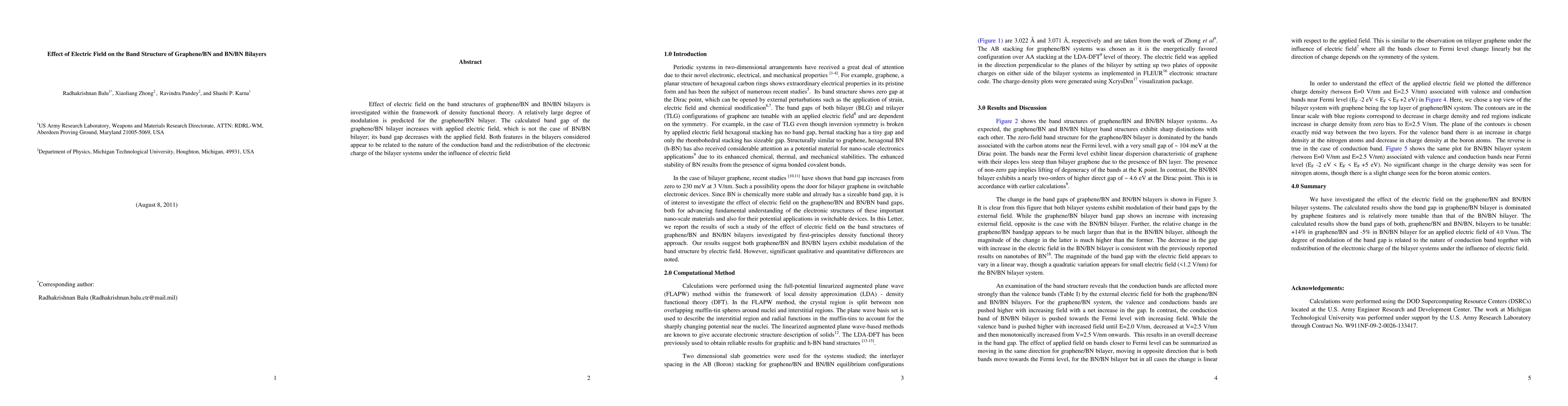 The study investigates how electric fields affect the band structures of graphene/BN and BN/BN bilayers using density functional theory, revealing significant modulation in the graphene/BN bilayer where the band gap increases with electric field, unlike the BN/BN bilayer where the band gap decreases.