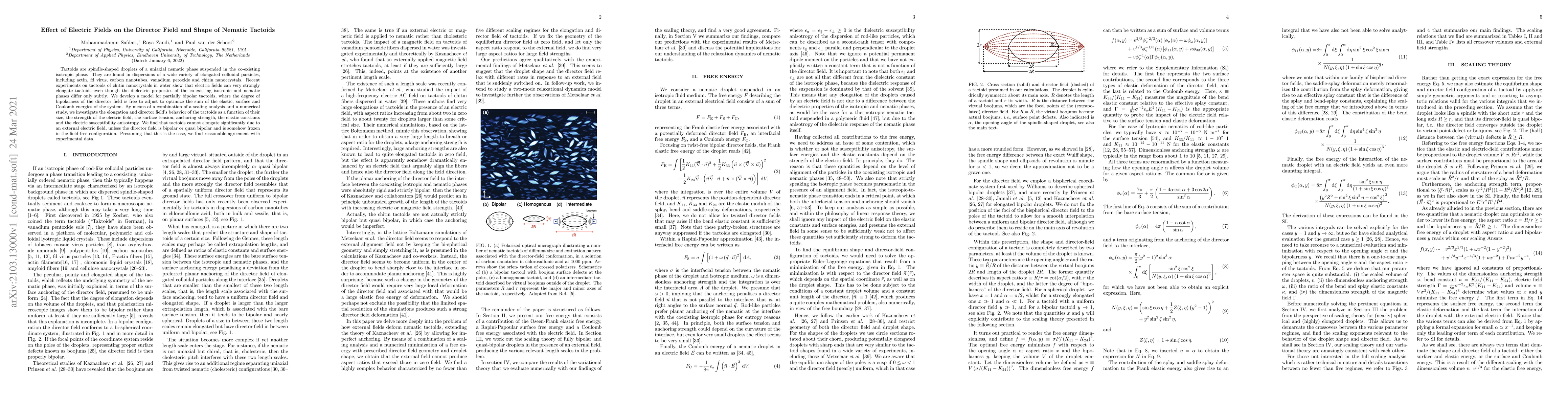 Electric fields can strongly elongate spindle-shaped tactoids in a nematic phase, but only if the director field is bipolar or quasi-bipolar, and experimental data matches a model that accounts for elastic, surface, and Coulomb energies.