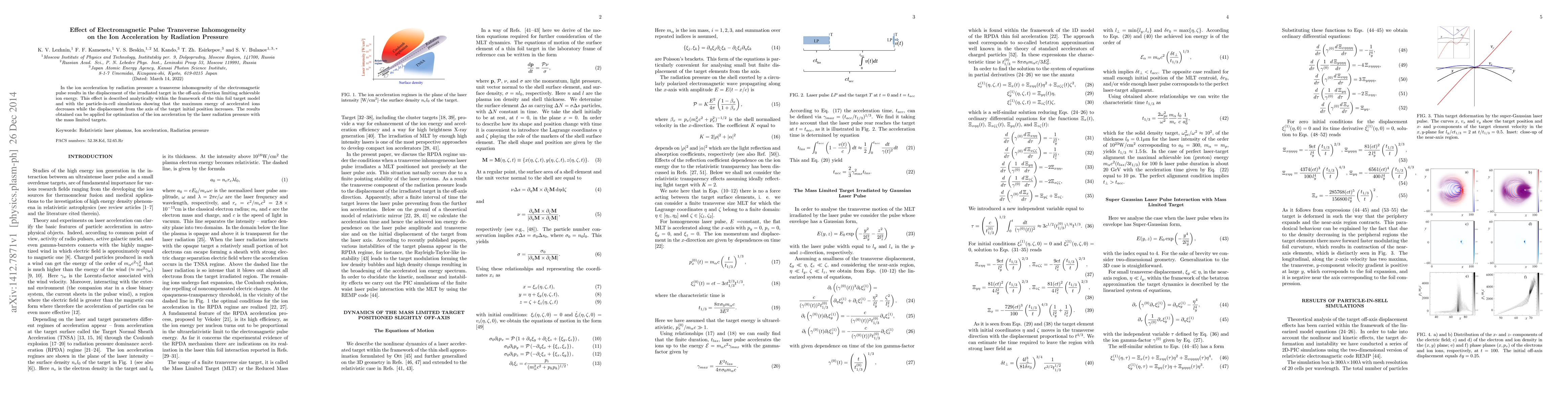 This study analyzes how transverse inhomogeneity in an electromagnetic pulse affects ion acceleration via radiation pressure, finding that it limits ion energy and displaces the target off-axis. Analytical and simulation results suggest optimized laser radiation pressure for mass-limited targets.