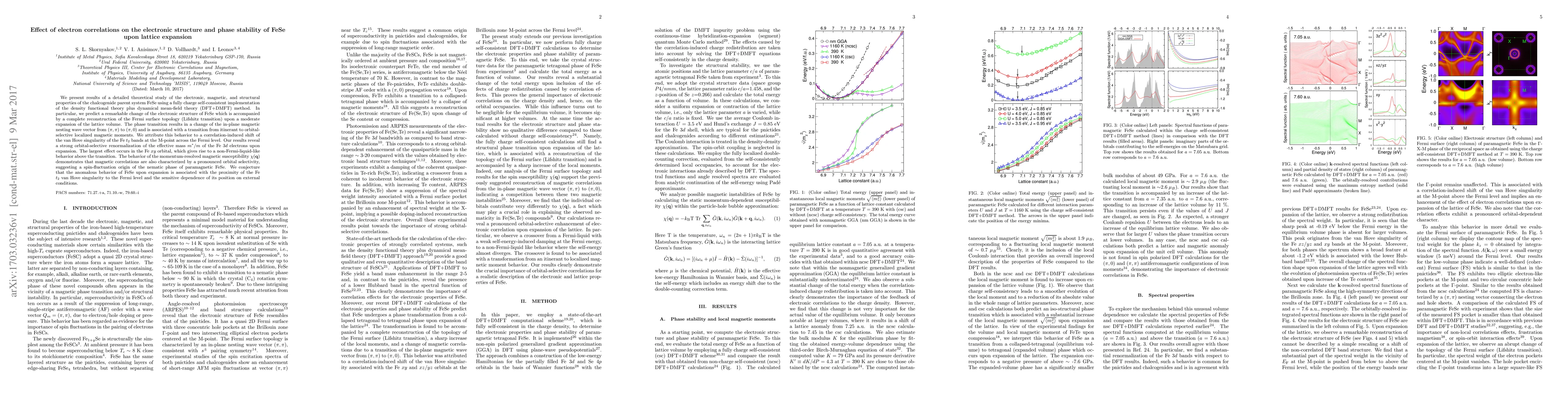 We present results of a detailed theoretical study of the electronic, magnetic, and structural properties of the chalcogenide parent system FeSe using a fully charge self-consistent implementation of the density functional theory plus dynamical mean-field theory (DFT+DMFT) method. In particular, we predict a remarkable change of the electronic structure of FeSe which is accompanied by a complete reconstruction of the Fermi surface topology (Lifshitz transition) upon a moderate expansion of the lattice volume. The phase transition results in a change of the in-plane magnetic nesting wave vector from $(\pi,\pi)$ to $(\pi,0)$ and is associated with a transition from itinerant to orbital-selective localized magnetic moments. We attribute this behavior to a correlation-induced shift of the van Hove singularity of the Fe $t_{2}$ bands at the M-point across the Fermi level. Our results reveal a strong orbital-selective renormalization of the effective mass $m^*/m$ of the Fe $3d$ electrons upon expansion. The largest effect occurs in the Fe $xy$ orbital, which gives rise to a non-Fermi-liquid-like behavior above the transition. The behavior of the momentum-resolved magnetic susceptibility $\chi({\bf q})$ demonstrates that magnetic correlations are also characterized by a pronounced orbital selectivity, suggesting a spin-fluctuation origin of the nematic phase of paramagnetic FeSe. We conjecture that the anomalous behavior of FeSe upon expansion is associated with the proximity of the Fe $t_{2}$ van Hove singularity to the Fermi level and the sensitive dependence of its position on external conditions.