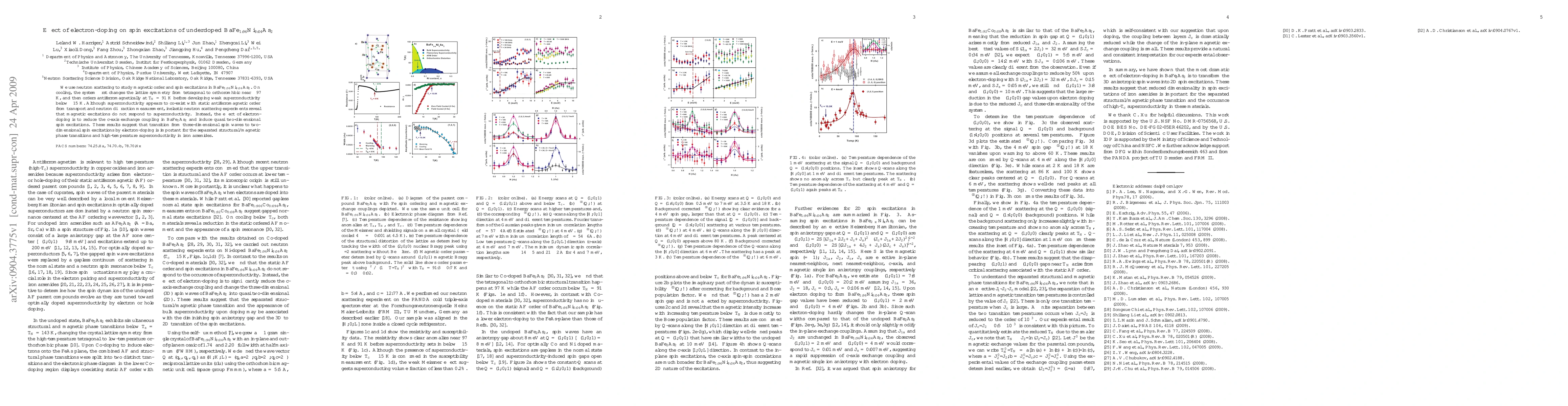 We use neutron scattering to study magnetic order and spin excitations in BaFe$_{1.96}$Ni$_{0.04}$As$_{2}$. On cooling, the system first changes the lattice symmetry from tetragonal to orthoromhbic near $\sim$97 K, and then orders antiferromagnetically at $T_N=91$ K before developing weak superconductivity below $\sim$15 K. Although superconductivity appears to co-exist with static antiferromagnetic order from transport and neutron diffraction measurement, inelastic neutron scattering experiments reveal that magnetic excitations do not respond to superconductivity. Instead, the effect of electron-doping is to reduce the c-axis exchange coupling in BaFe$_2$As$_2$ and induce quasi two-dimensional spin excitations. These results suggest that transition from three-dimensional spin waves to two-dimensional spin excitations by electron-doping is important for the separated structural/magnetic phase transitions and high-temperature superconductivity in iron arsenides.