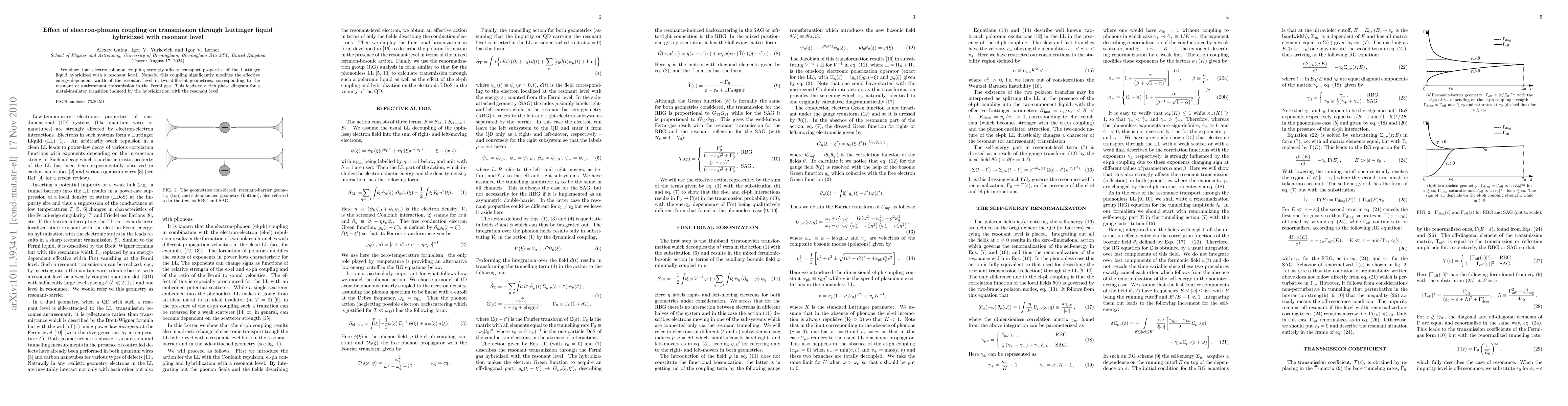 The research demonstrates that electron-phonon coupling significantly alters the transport properties of a Luttinger liquid hybridized with a resonant level, leading to a complex phase diagram for metal-insulator transitions. This coupling modifies the effective energy-dependent width of the resonant level, resulting in either resonant or antiresonant transmission in the Fermi gas.