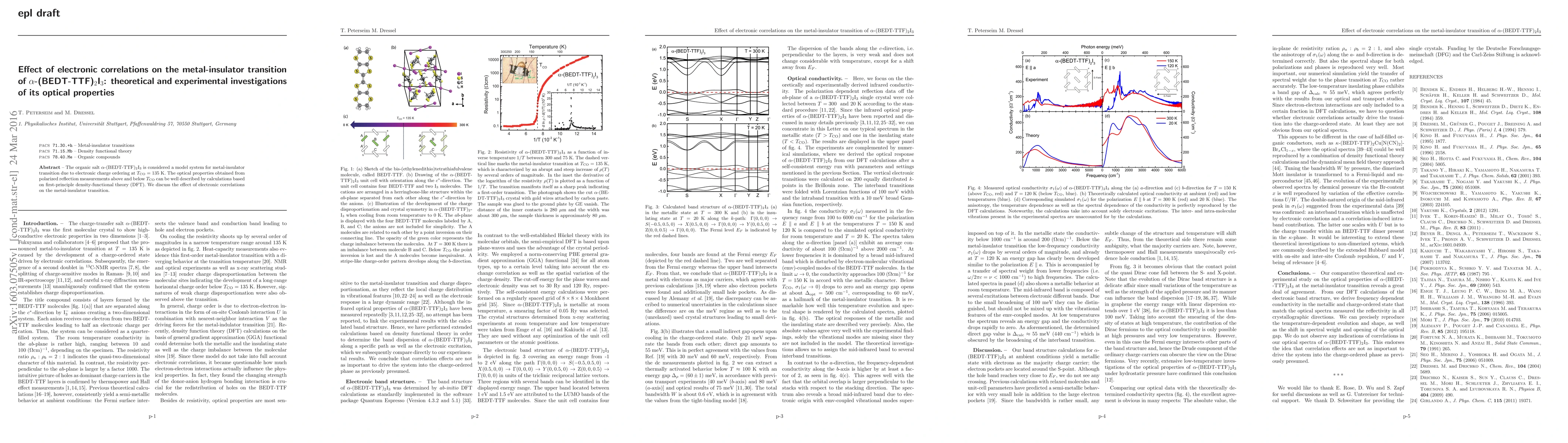 The organic salt $\alpha$-(BEDT-TTF)$_2$I$_3$ is considered a model system for metal-insulator transition due to electronic charge ordering at $T_{\rm CO}=135$~K. The optical properties obtained from polarized reflection measurements above and below $T_{\rm CO}$ can be well described by calculations based on first-principle density-functional theory (DFT). We discuss the effect of electronic correlations on the metal-insulator transition.