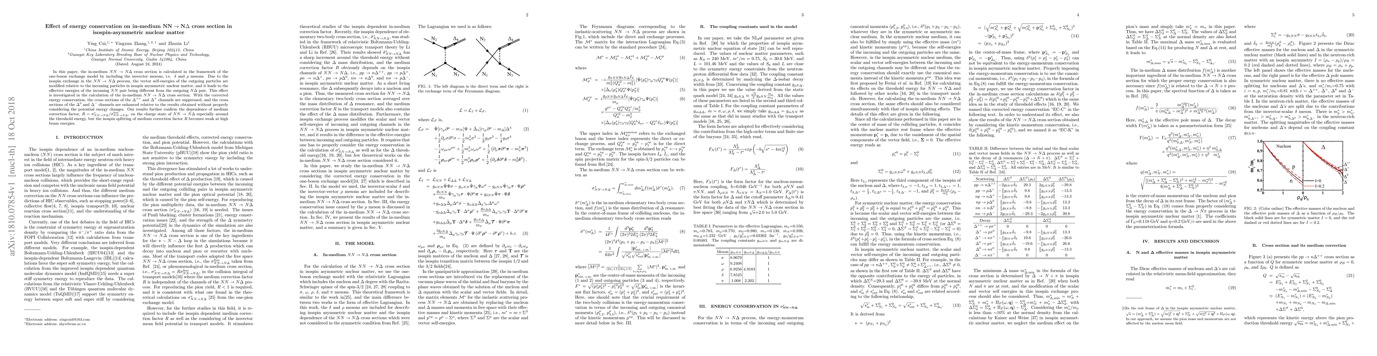This paper investigates the effect of energy conservation on the in-medium $NN\rightarrow N\Delta$ cross section in isospin-asymmetric nuclear matter, revealing that the cross sections for different $\Delta$ charge states are modified due to isospin exchange and vector self-energy changes. The study confirms the dependence of the medium correction factor on the charge state, especially near the threshold energy.