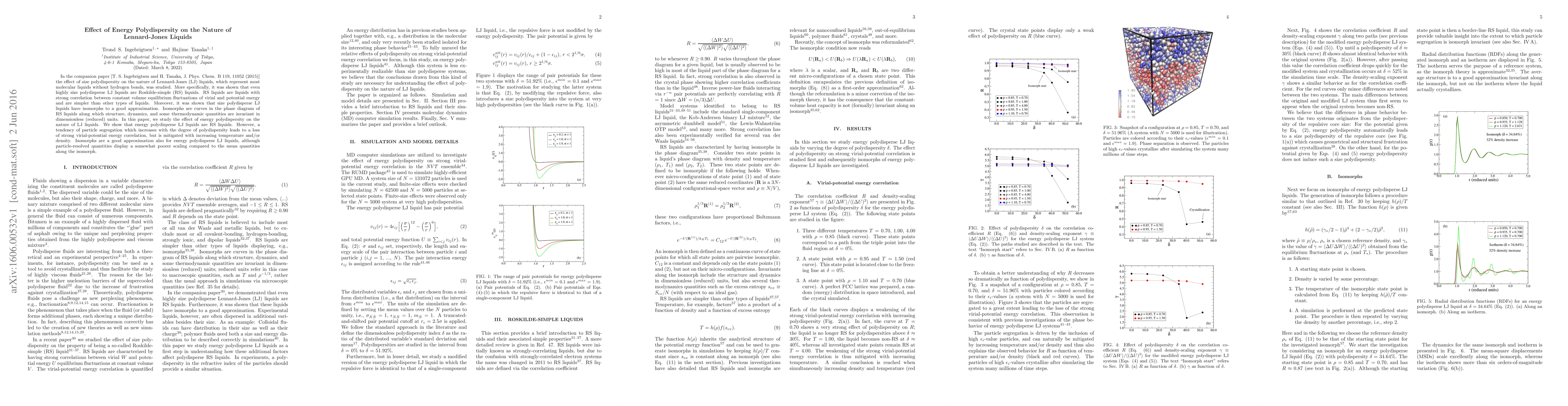 This paper investigates the impact of energy polydispersity on Lennard-Jones liquids, showing that despite a tendency for particle segregation with increased polydispersity, these liquids remain Roskilde-simple. The study finds that isomorphs provide a good approximation for energy polydisperse liquids, though particle-resolved quantities exhibit less ideal scaling compared to mean quantities.