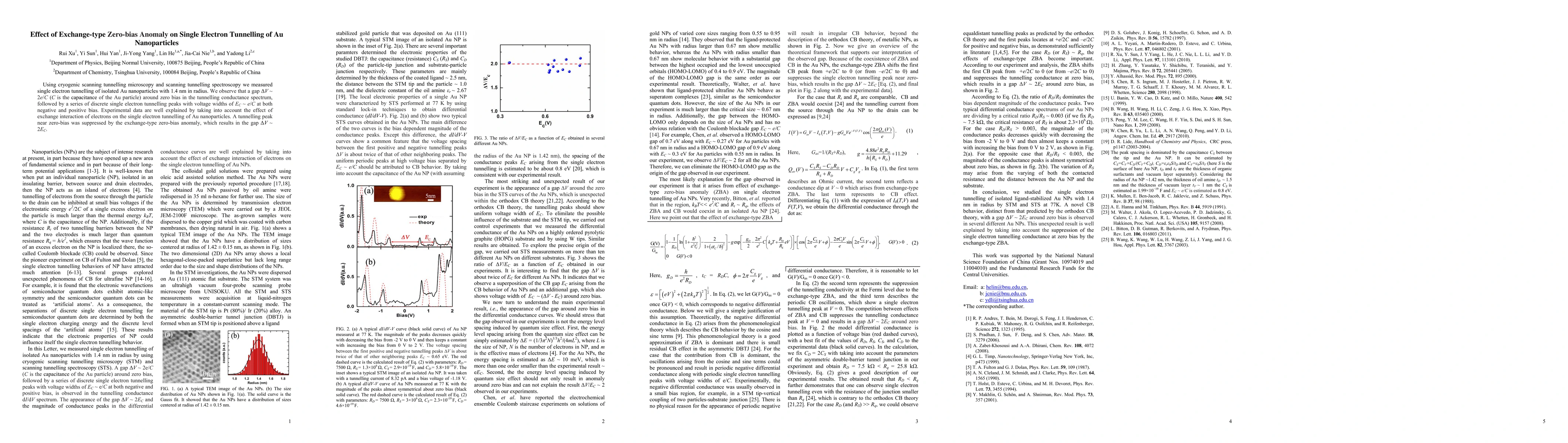 Using cryogenic scanning tunnelling microscopy and scanning tunnelling spectroscopy we measured single electron tunnelling of isolated Au nanoparticles with 1.4 nm in radius. We observe that a gap {\Delta}V ~ 2e/C (C is the capacitance of the Au particle) around zero bias in the tunnelling conductance spectrum, followed by a series of discrete single electron tunnelling peaks with voltage widths of EC ~ e/C at both negative and positive bias. Experimental data are well explained by taking into account the effect of exchange interaction of electrons on the single electron tunnelling of Au nanoparticles. A tunnelling peak near zero-bias was suppressed by the exchange-type zero-bias anomaly, which results in the gap {\Delta}V ~ 2EC.