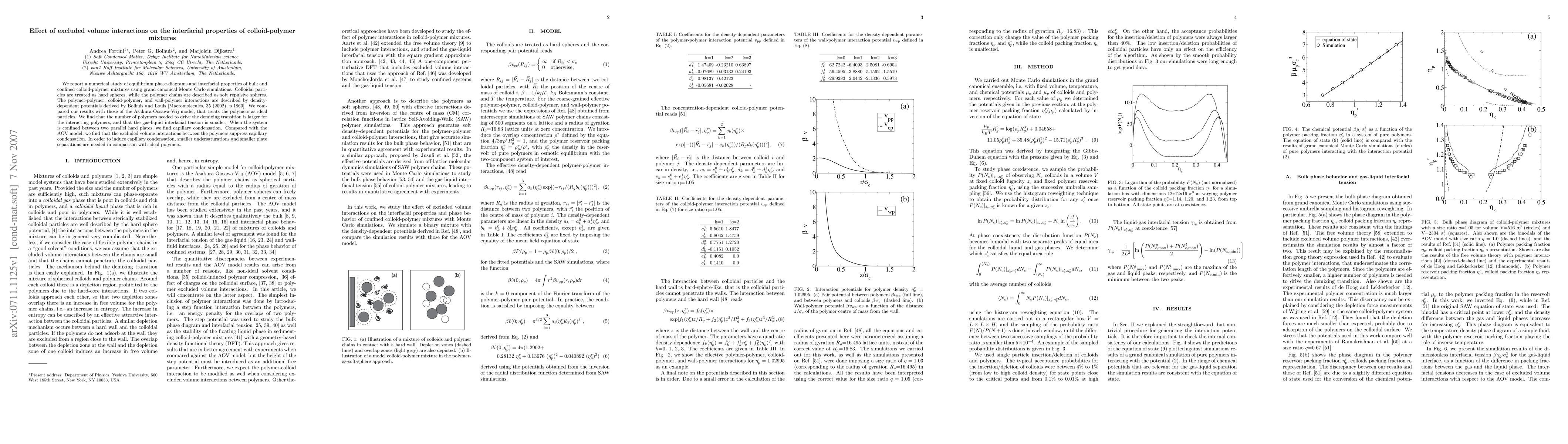 This study uses grand canonical Monte Carlo simulations to investigate how excluded volume interactions affect the interfacial properties of colloid-polymer mixtures, finding that interacting polymers require more to drive demixing and suppress capillary condensation compared to ideal polymers.