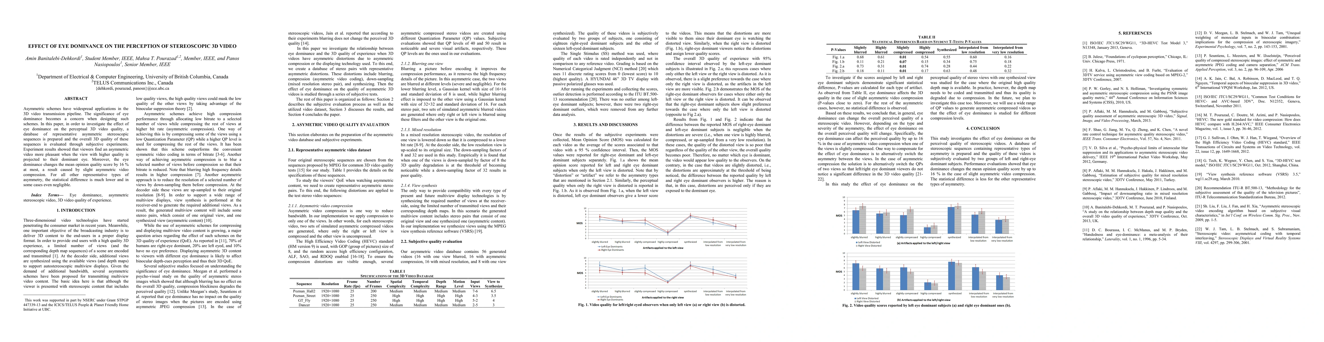 This study investigates how eye dominance affects the perception of asymmetric stereoscopic 3D video quality. Results indicate that viewers prefer asymmetric videos when the higher quality view is shown to their dominant eye, with a maximum 16% change in perceived quality score due to asymmetric compression.