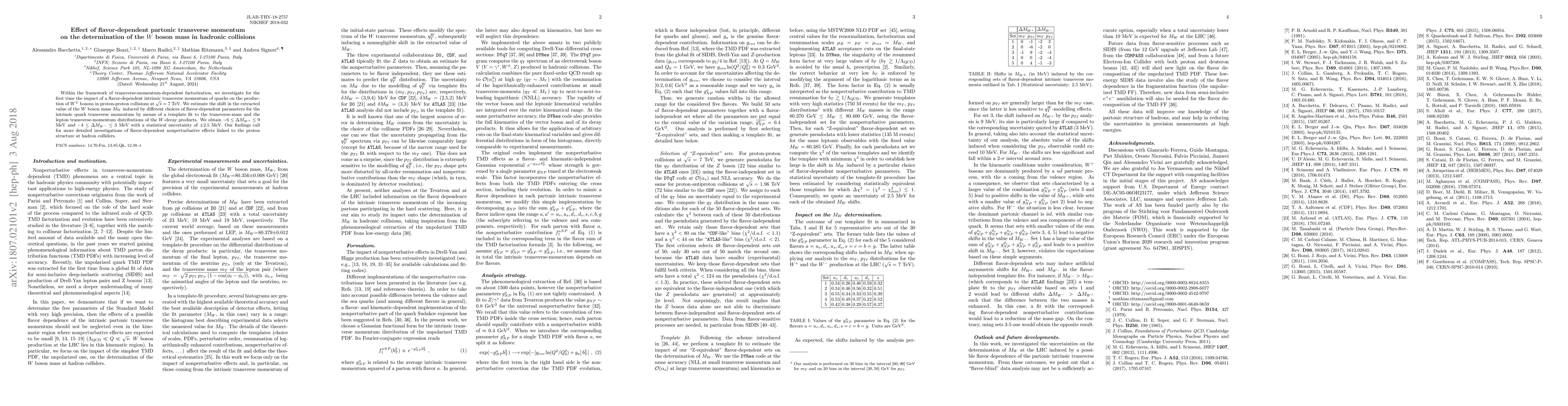 Within the framework of transverse-momentum-dependent factorization, we investigate for the first time the impact of a flavor-dependent intrinsic transverse momentum of quarks on the production of $W^{\pm}$ bosons in proton-proton collisions at $\sqrt{s}$ = 7 TeV. We estimate the shift in the extracted value of the $W$ boson mass $M_W$ induced by different choices of flavor-dependent parameters for the intrinsic quark transverse momentum by means of a template fit to the transverse-mass and the lepton transverse-momentum distributions of the $W$-decay products. We obtain $-6\leq \Delta M_{W^+} \leq 9$ MeV and $-4\leq \Delta M_{W^-} \leq 3$ MeV with a statistical uncertainty of $\pm 2.5$ MeV. Our findings call for more detailed investigations of flavor-dependent nonperturbative effects linked to the proton structure at hadron colliders.
