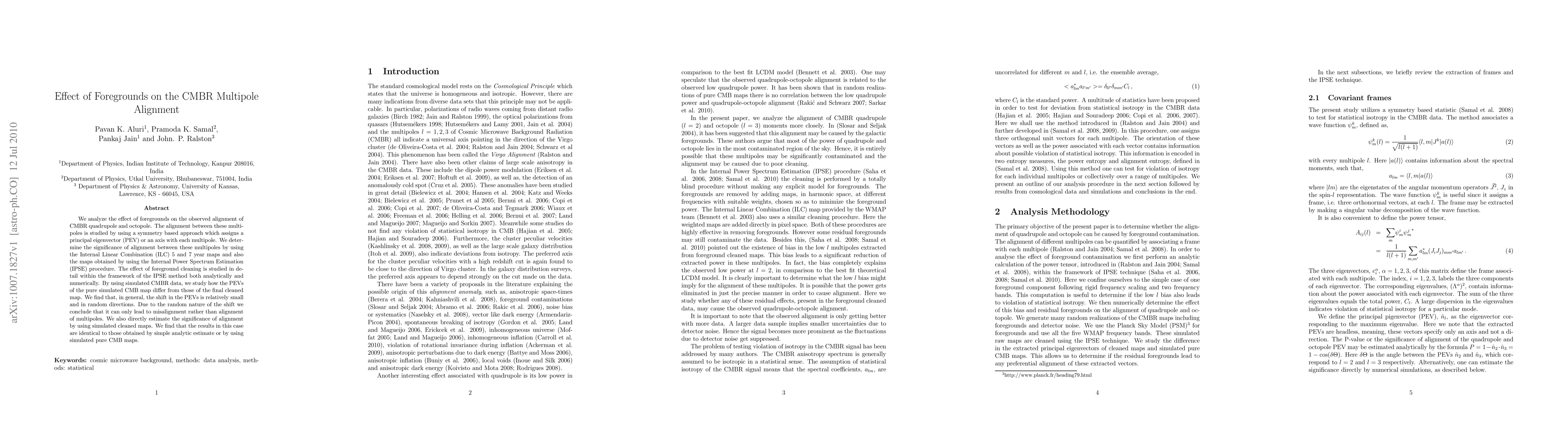 This paper investigates the impact of foregrounds on the alignment of CMBR quadrupole and octopole multipoles, finding minimal shifts in principal eigenvectors post-cleaning. The analysis concludes that foreground removal does not induce alignment but rather random misalignment, with results consistent across various methods.