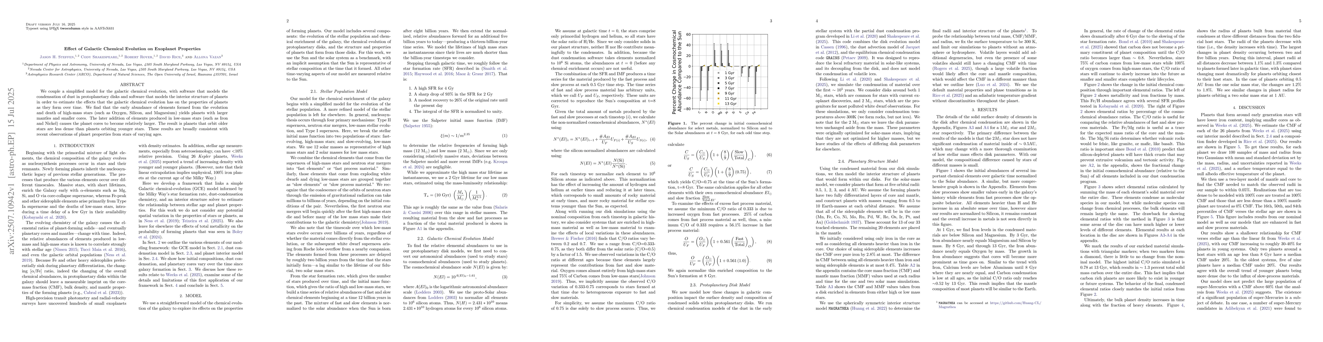 We couple a simplified model for the galactic chemical evolution, with software that models the condensation of dust in protoplanetary disks and software that models the interior structure of planets in order to estimate the effects that the galactic chemical evolution has on the properties of planets as they form over time. We find that the early abundance of elements formed from the evolution and death of high-mass stars (such as Oxygen, Silicon, and Magnesium) yields planets with larger mantles and smaller cores. The later addition of elements produced in low-mass stars (such as Iron and Nickel) causes the planet cores to become relatively larger. The result is planets that orbit older stars are less dense than planets orbiting younger stars. These results are broadly consistent with recent observations of planet properties from stars of varying ages.