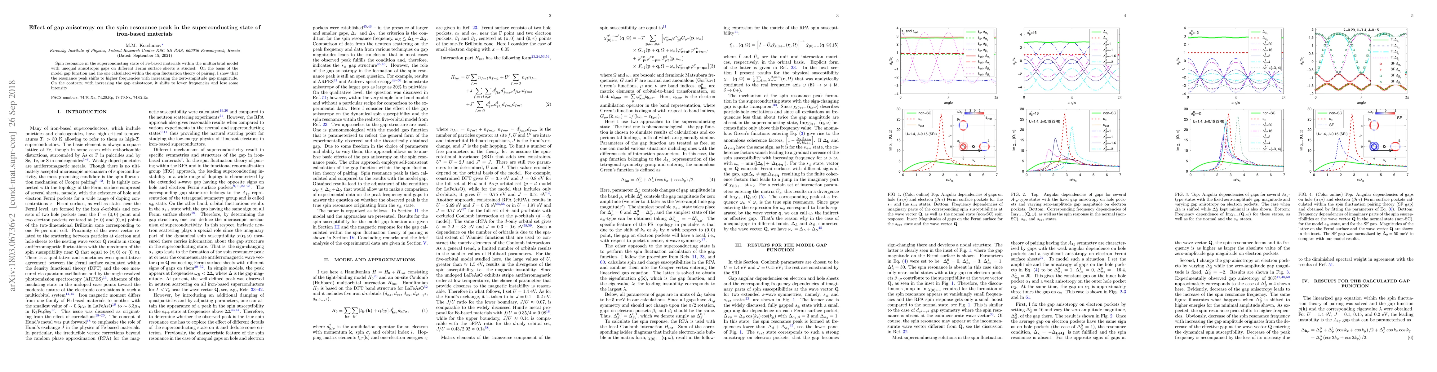Spin resonance in the superconducting state of Fe-based materials within the multiorbital model with unequal anisotropic gaps on different Fermi surface sheets is studied. On the basis of the model gap function and the one calculated within the spin fluctuation theory of pairing, I show that the resonance peak shifts to higher frequencies with increasing the zero-amplitude gap magnitude. On the contrary, with increasing the gap anisotropy, it shifts to lower frequencies and lose some intensity.