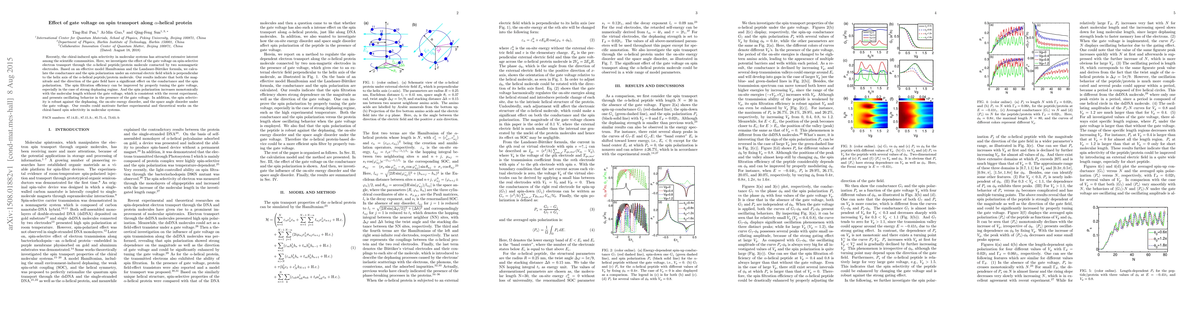 This study investigates how gate voltage affects spin-selective electron transport through $\alpha$-helical proteins using a model Hamiltonian and Landauer-Büttiker formula. Results show that gate voltage significantly influences conductance and spin polarization, with improved spin filtration efficiency achievable by tuning the gate voltage, especially in strong dephasing regimes.