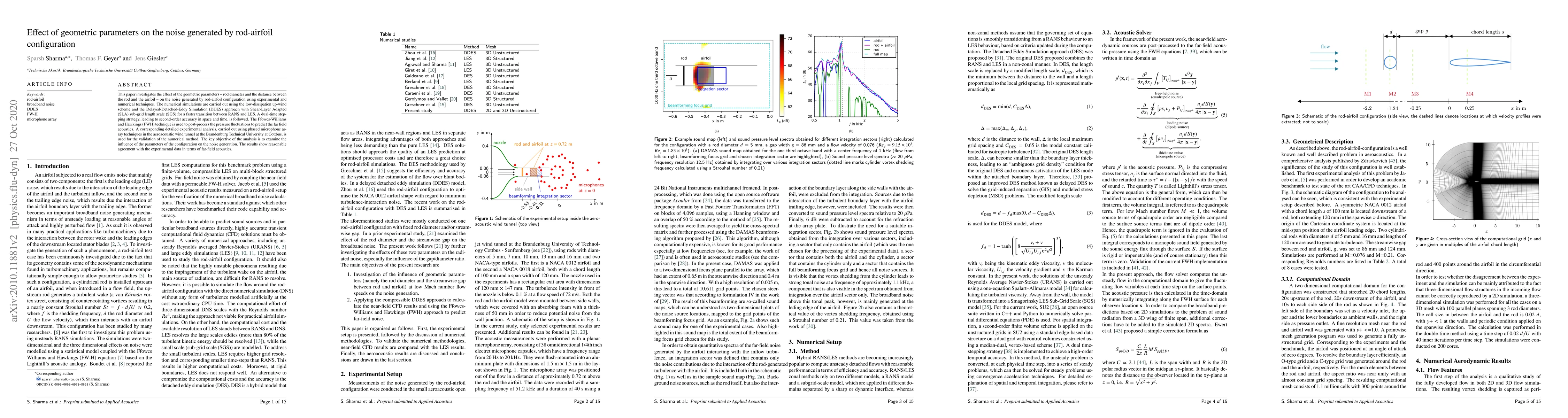This paper investigates the effect of the geometric parameters -- rod diameter and the distance between the rod and the airfoil -- on the noise generated by rod-airfoil configuration using experimental and numerical techniques. The numerical simulations are carried out using the low-dissipation up-wind scheme and the Delayed-Detached-Eddy Simulation (DDES) approach with Shear-Layer Adapted (SLA) sub-grid length scale (SGS) for a faster transition between RANS and LES. A dual-time stepping strategy, leading to second-order accuracy in space and time, is followed. The Ffowcs-Williams and Hawkings (FWH) technique is used to post-process the pressure fluctuations to predict the far~field acoustics. A corresponding detailed experimental analysis, carried out using phased microphone array techniques in the aeroacoustic wind tunnel at the Brandenburg Technical University at Cottbus, is used for the validation of the numerical method. The key objective of the analysis is to examine the influence of the parameters of the configuration on the noise generation. The results show reasonable agreement with the experimental data in terms of far-field acoustics.
