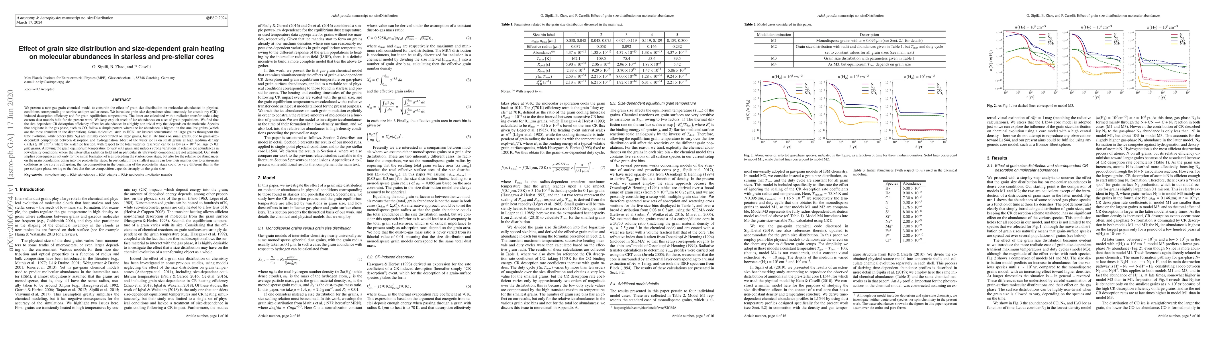 This paper develops a gas-grain chemical model to explore how grain size distribution and size-dependent grain heating influence molecular abundances in starless and pre-stellar cores. It finds that size-dependent cosmic-ray desorption efficiency and grain equilibrium temperatures significantly affect the distribution of ices on different grain sizes, with implications for the chemical evolution leading to star formation.