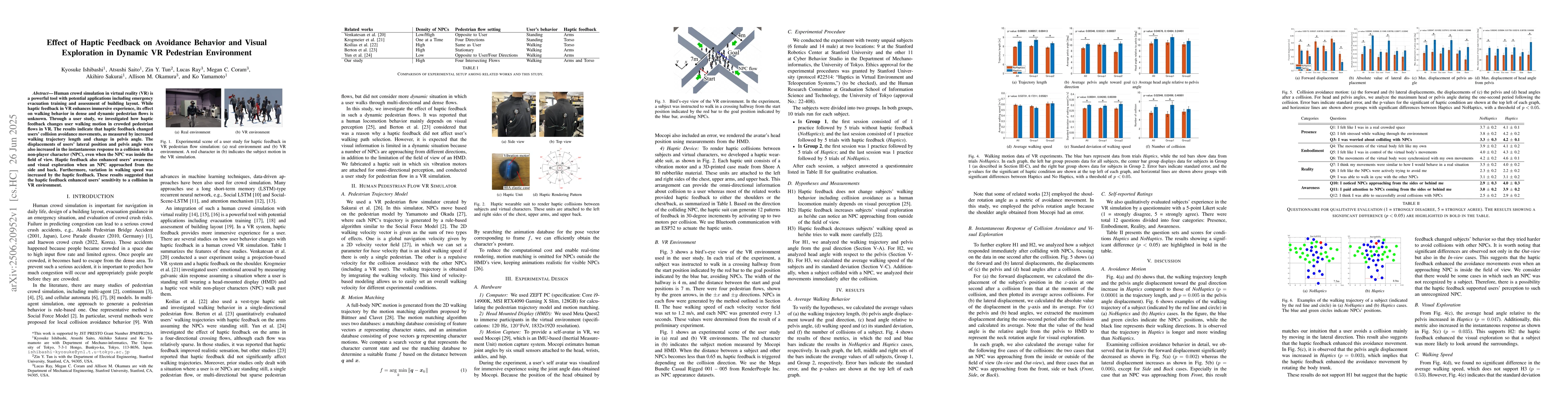 This research demonstrates that haptic feedback can improve users' perception and response to dynamic pedestrian environments in VR, which is crucial for applications like emergency training and crowd management.