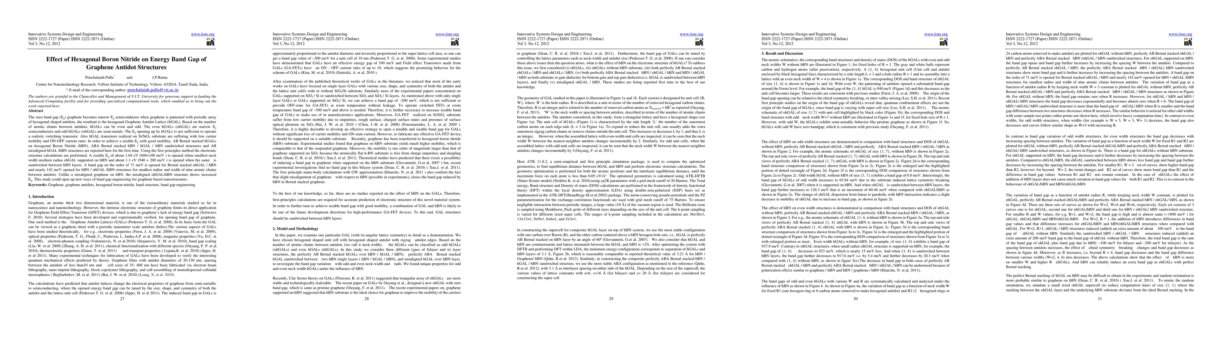 This study investigates the effect of hexagonal boron nitride (hBN) on the energy band gap of hexagonal graphene antidot lattices (hGALs), finding that hBN can significantly increase the band gap, achieving values up to 1.1 eV for certain configurations, thereby enhancing potential applications in switching transistors.