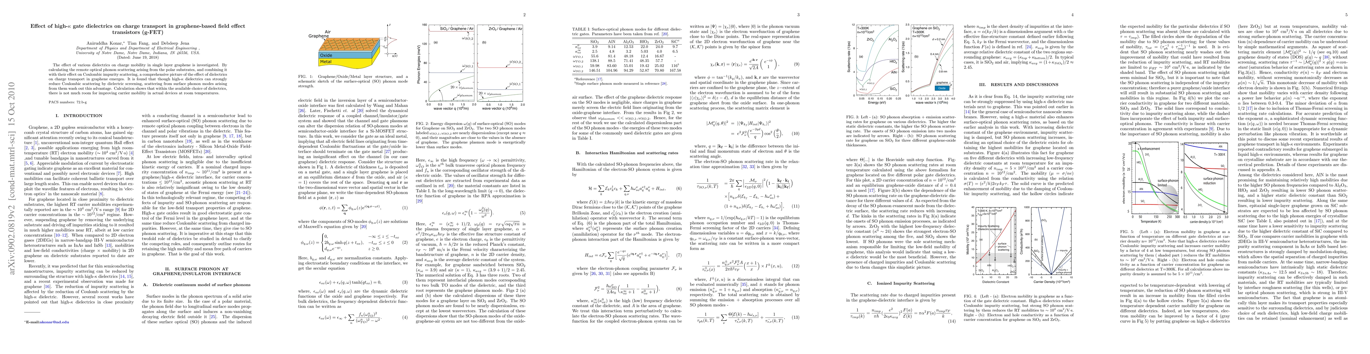 Summary: High-κ dielectrics reduce Coulombic scattering in graphene but introduce phonon scattering that negates this benefit; strategies to enhance graphene's mobility are proposed by comparing its room-temperature transport with narrow-bandgap semiconductors.