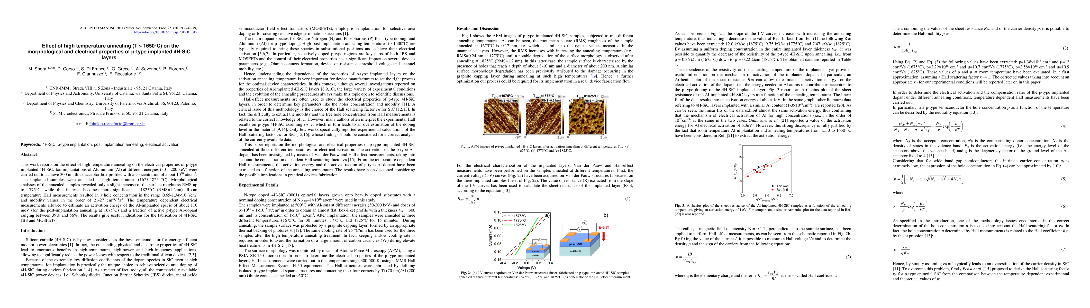 High temperature annealing (>1650°C) of p-type implanted 4H-SiC layers results in minor surface roughness increase and significant activation of Al dopant, enhancing hole concentration and mobility, useful for 4H-SiC JBS and MOSFET fabrication.