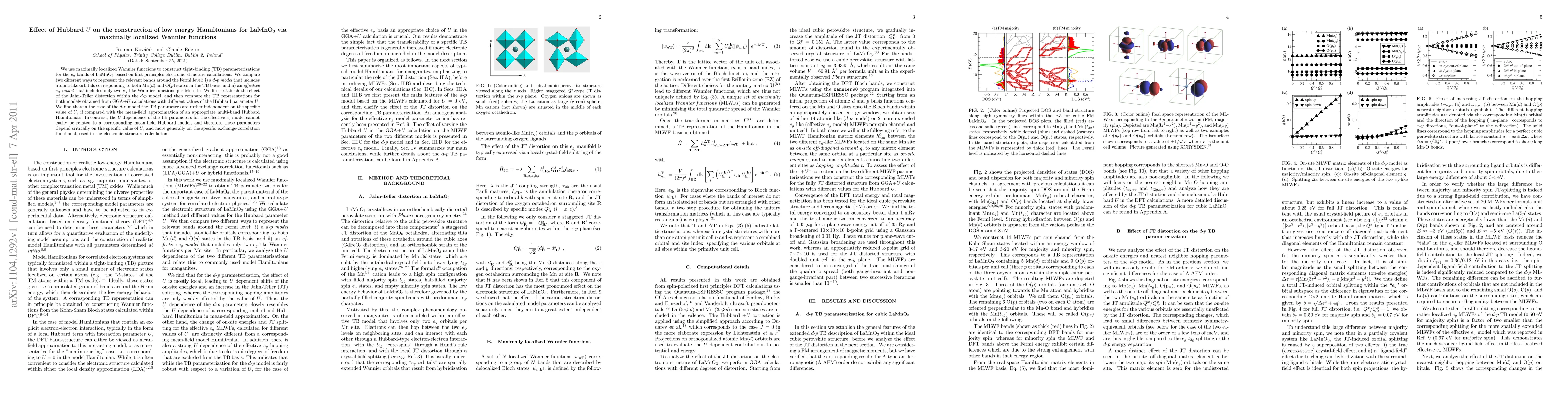 This study uses maximally localized Wannier functions to build tight-binding models for LaMnO_3's e_g bands, comparing two TB representations: a d-p model and an effective e_g model. The d-p model shows U-invariance, while the effective e_g model's parameters critically depend on the Hubbard U value and the exchange-correlation functional used.