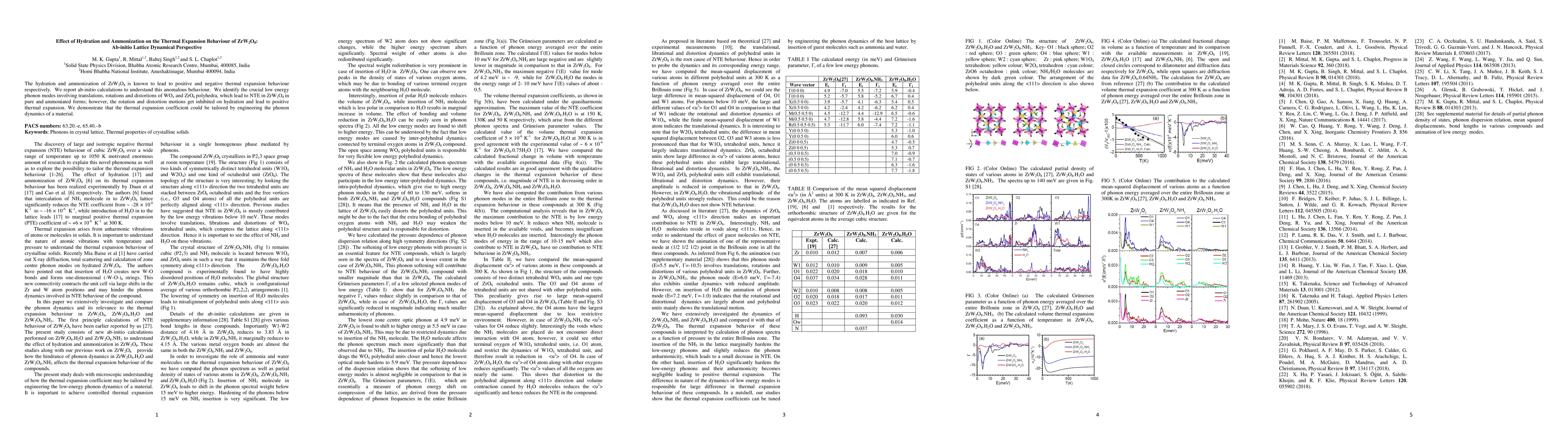 This study uses ab-initio calculations to elucidate the thermal expansion behavior of ZrW2O8 under hydration and ammonization, revealing that ammonization induces negative thermal expansion (NTE) while hydration causes positive thermal expansion. The research identifies specific phonon modes responsible for these effects, showing that phonon dynamics can be engineered to tailor thermal expansion.