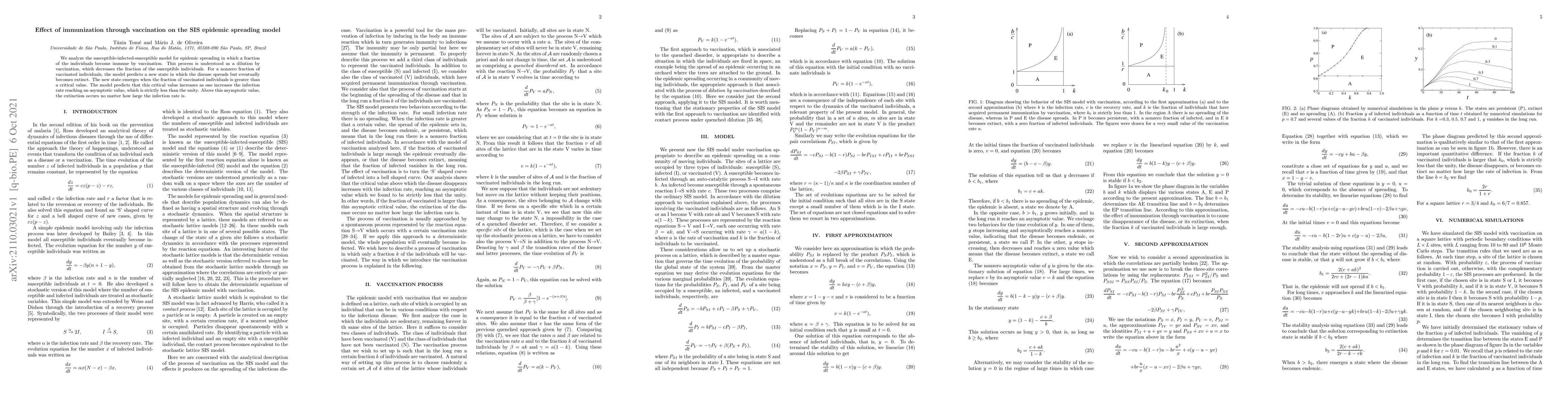 Vaccination reduces the spread of disease by making a fraction of individuals immune, eventually leading to extinction at high infection rates. The critical value for vaccination effectiveness increases as infection rates rise, above which disease becomes extinct regardless of rate.