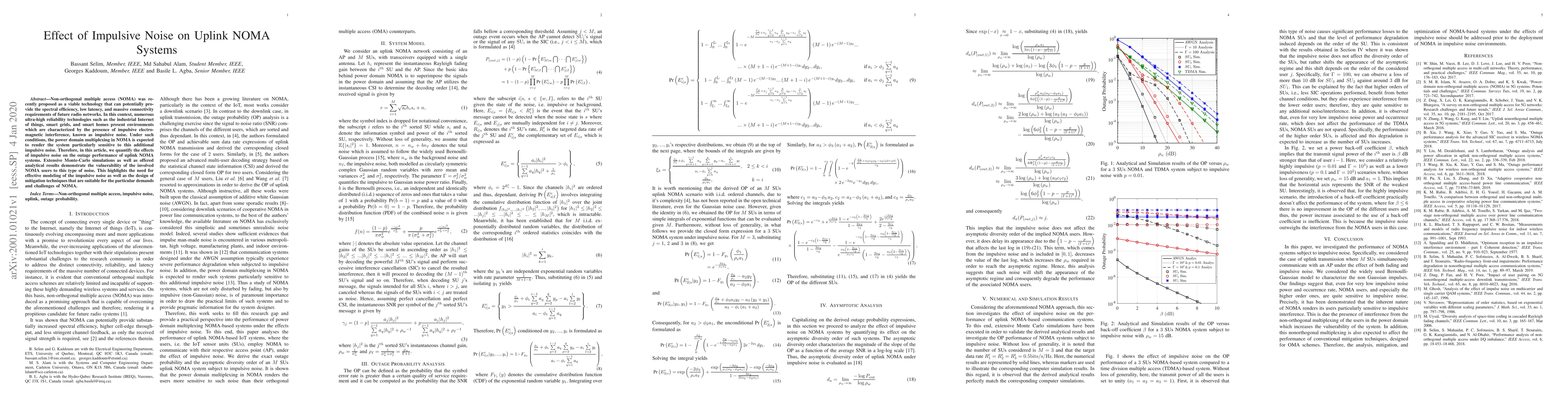 This paper investigates the impact of impulsive noise on the performance of uplink non-orthogonal multiple access (NOMA) systems, revealing significant vulnerabilities through analytical and simulation results. The study underscores the necessity for advanced modeling and mitigation strategies tailored to NOMA's unique requirements.
