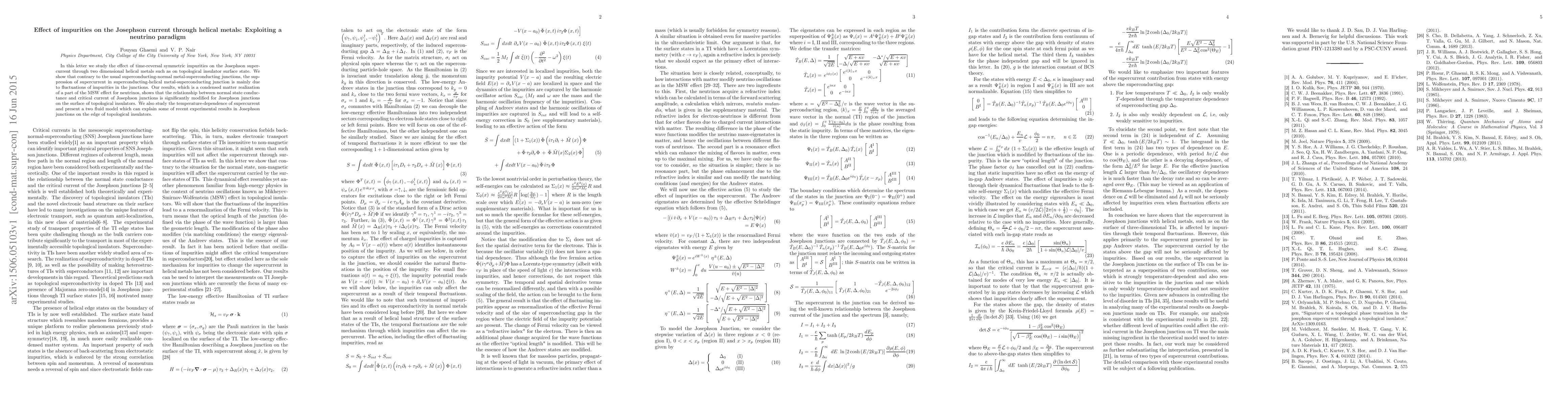 This research investigates how time-reversal symmetric impurities affect Josephson current in helical metals, revealing that impurity fluctuations primarily suppress supercurrent. The findings, akin to the Mikheyev-Smirnov-Wolfenstein (MSW) effect for neutrinos, demonstrate a significant modification in the relationship between normal state conductance and critical current in such junctions, particularly on topological insulator surfaces.