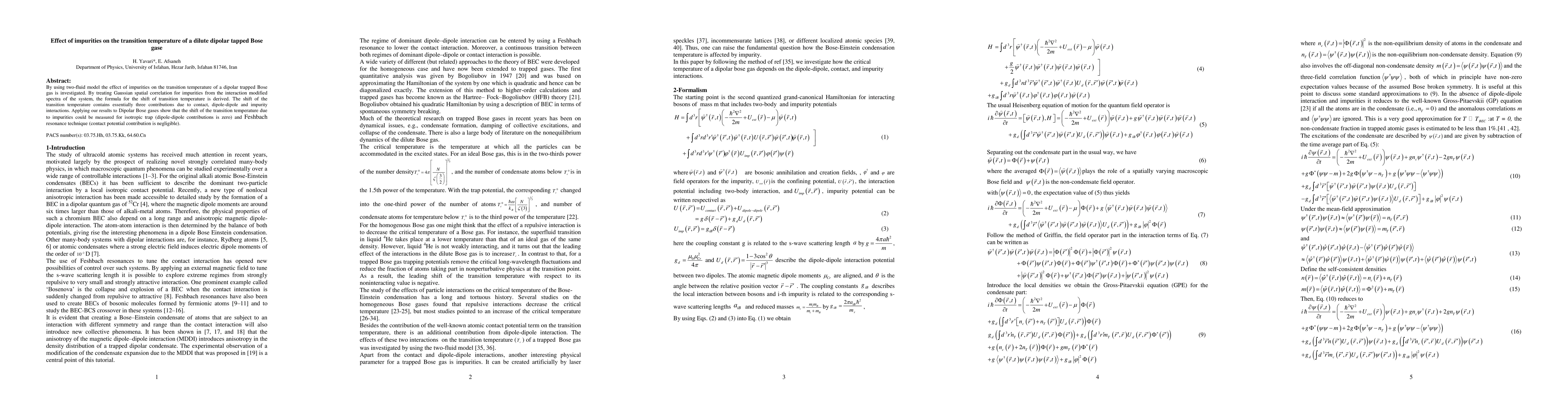 Researchers used a two-fluid model to study how impurities affect the transition temperature of a dipolar trapped Bose gas, finding that impurities cause a shift in the temperature due to three types of interactions: contact, dipole-dipole, and impurity effects.