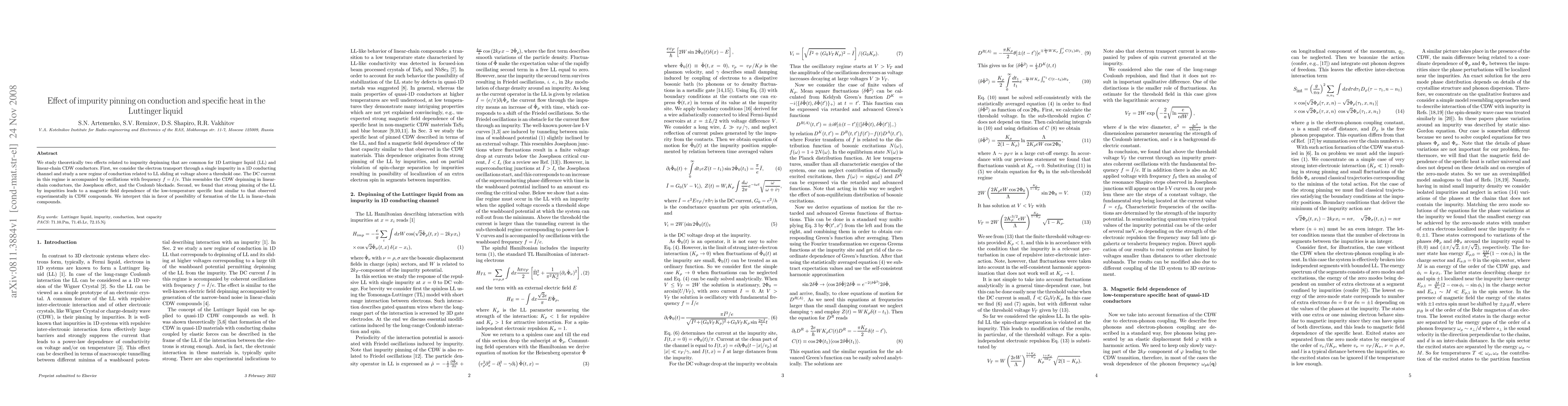 We study theoretically two effects related to impurity depinning that are common for 1D Luttinger liquid (LL) and linear-chain CDW conductors. First, we consider the electron transport through a single impurity in a 1D conducting channel and study a new regime of conduction related to LL sliding at voltage above a threshold one. The DC current in this regime is accompanied by oscillations with frequency $f =I/e$. This resembles the CDW depinning in linear-chain conductors, the Josephson effect, and the Coulomb blockade. Second, we found that strong pinning of the LL by impurities leads to a magnetic field dependence of the low-temperature specific heat similar to that observed experimentally in CDW compounds. We interpret this in favor of possibility of formation of the LL in linear-chain compounds.