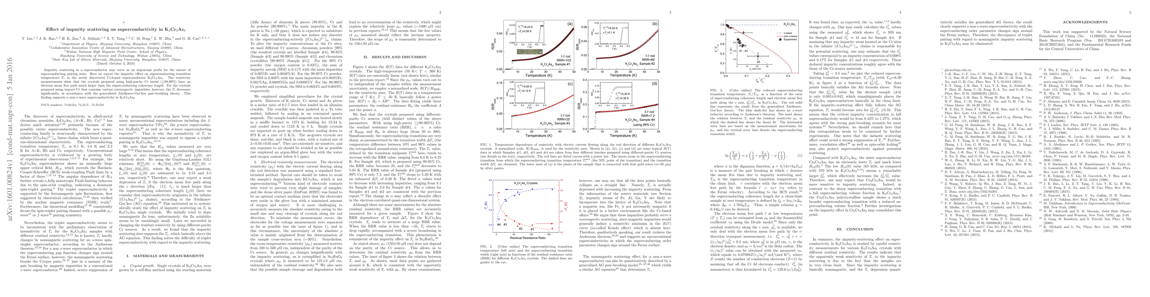 This study investigates how impurity scattering affects the superconducting transition temperature $T_\mathrm{c}$ in K$_2$Cr$_3$As$_3$. Results show that $T_\mathrm{c}$ decreases significantly with nonmagnetic impurities, supporting a non-$s$-wave superconducting pairing state.