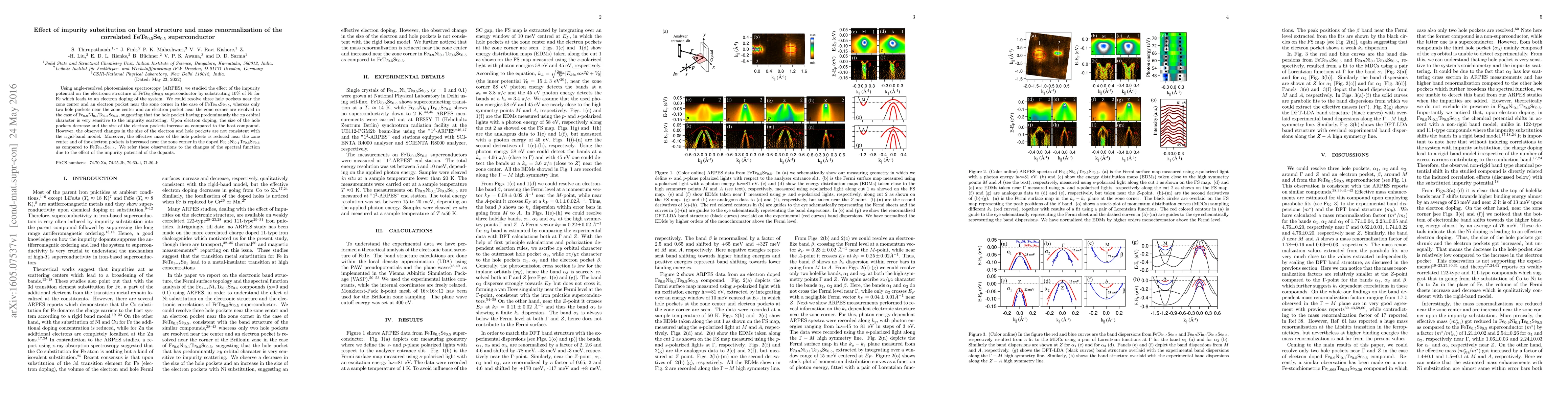 Researchers studied how impurities affect the electronic structure of a superconductor, finding that doping with nickel reduces hole pocket size and increases electron pocket size, contradicting predictions from rigid-band models.