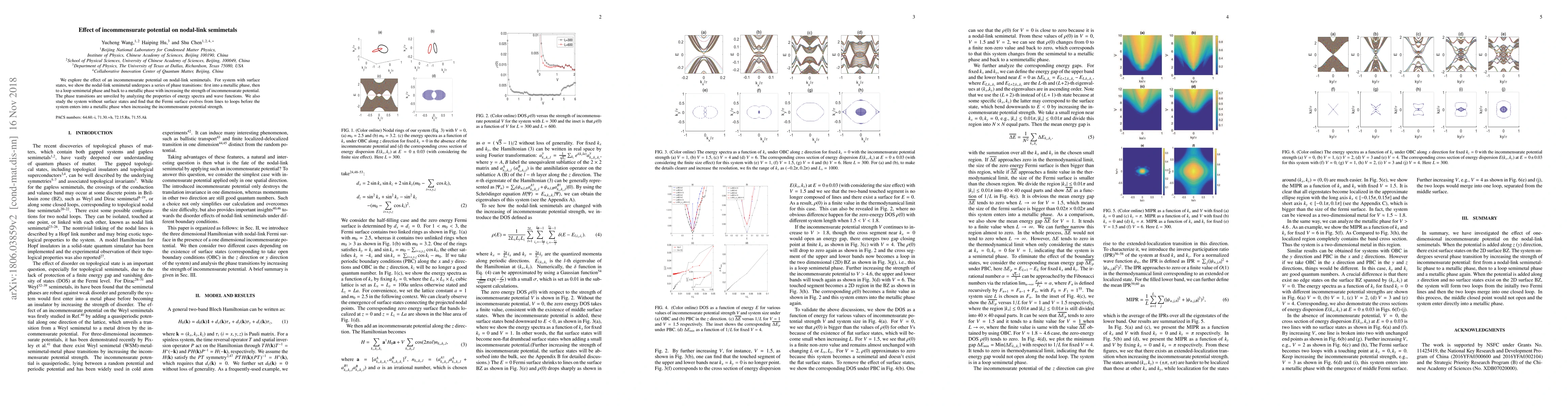 The research investigates the impact of an incommensurate potential on nodal-link semimetals, revealing phase transitions to metallic, loop semimetal, and back to metallic states with increasing potential strength, and evolution of the Fermi surface from lines to loops in systems without surface states.