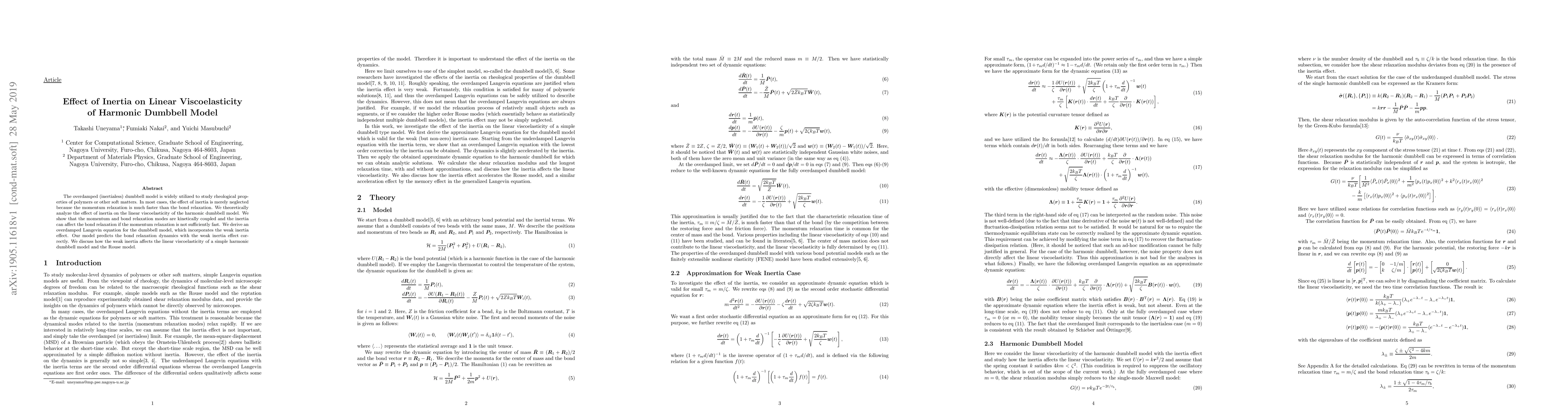 The paper analyzes how inertia affects the linear viscoelasticity of harmonic dumbbell models, finding that inertia impacts bond relaxation when momentum relaxation is slow. It introduces an overdamped Langevin equation with weak inertia for correct predictions of dynamics.