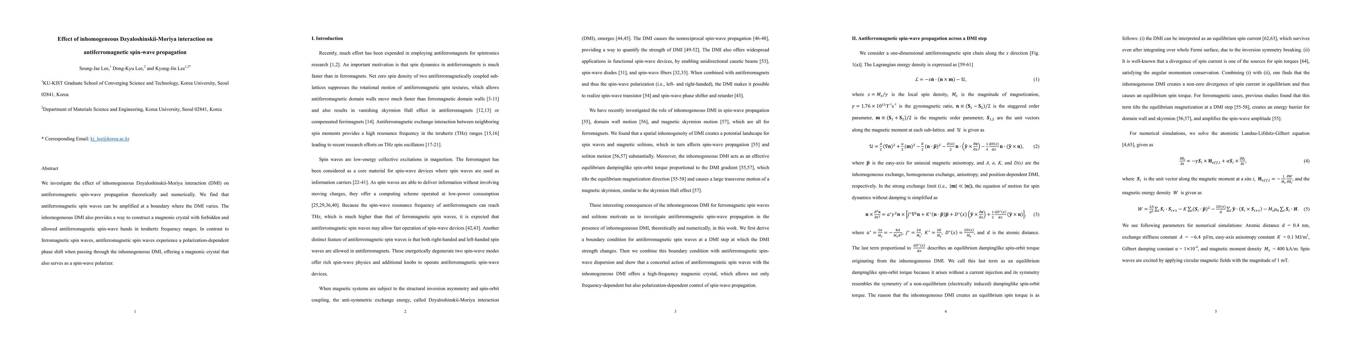 This paper explores how inhomogeneous Dzyaloshinskii-Moriya interaction (DMI) influences antiferromagnetic spin-wave propagation, revealing amplification at DMI boundary variations and enabling the creation of magnonic crystals with distinct spin-wave bands. Unlike ferromagnetic spin waves, antiferromagnetic spin waves exhibit polarization-dependent phase shifts, making the system a potential spin-wave polarizer.