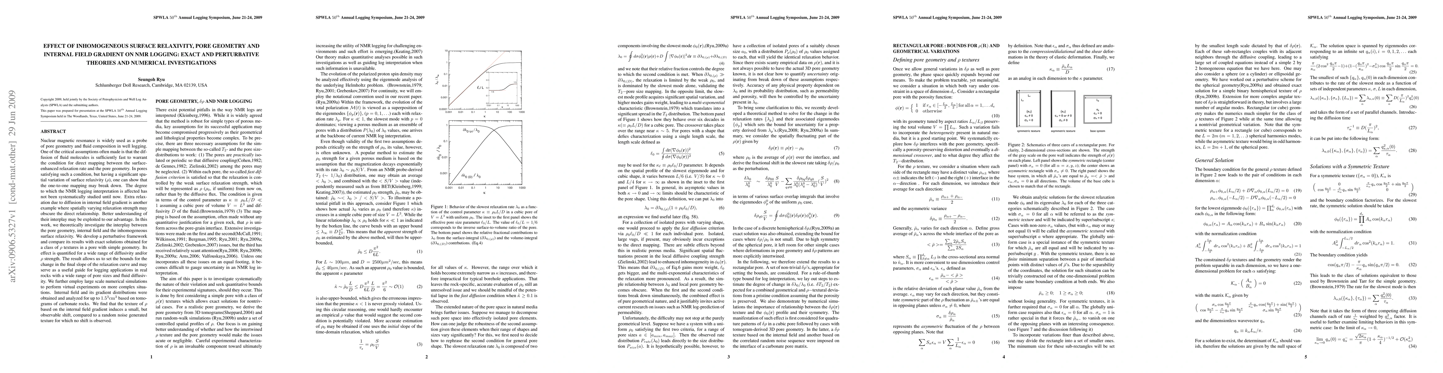 This paper investigates how inhomogeneous surface relaxivity, pore geometry, and internal field gradients affect NMR logging interpretation. It develops both perturbative and exact theoretical frameworks, comparing results to guide real-world logging applications, and uses numerical simulations to analyze complex rock tomograms, revealing a small but observable shift in relaxation curves due to internal field gradient-induced rho texture.