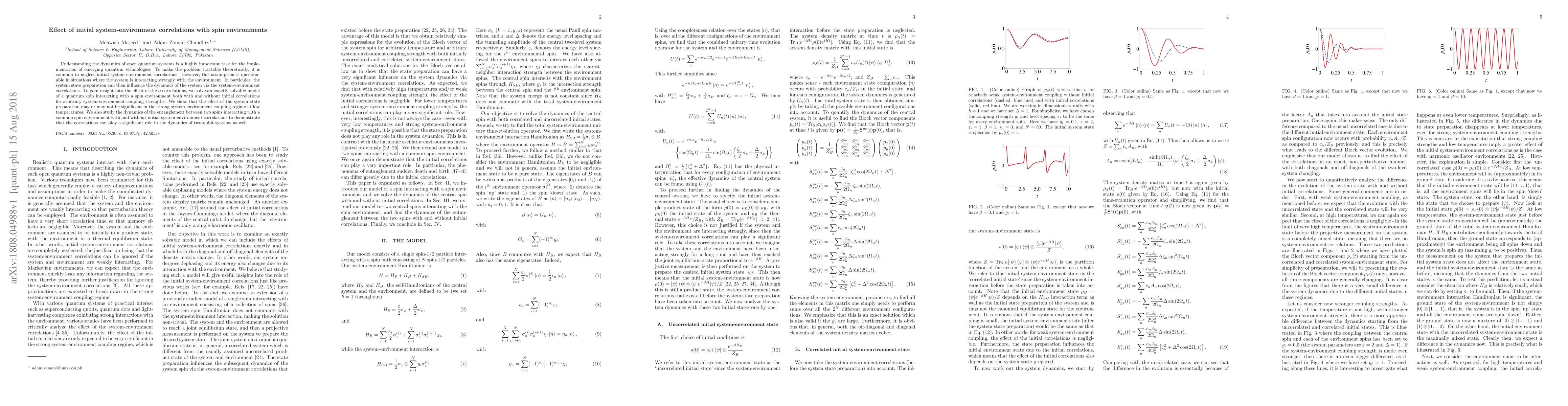 Understanding the dynamics of open quantum systems is a highly important task for the implementation of emerging quantum technologies. To make the problem tractable theoretically, it is common to neglect initial system-environment correlations. However, this assumption is questionable in situations where the system is interacting strongly with the environment. In particular, the system state preparation can then influence the dynamics of the system via the system-environment correlations. To gain insight into the effect of these correlations, we solve an exactly solvable model of a quantum spin interacting with a spin environment both with and without initial correlations for arbitrary system-environment coupling strengths. We show that the effect of the system state preparation may or may not be significant in the strong system-environment coupling regime at low temperatures. We also study the dynamics of the entanglement between two spins interacting with a common spin environment with and without initial system-environment correlations to demonstrate that the correlations can play a significant role in the dynamics of two-qubit systems as well.